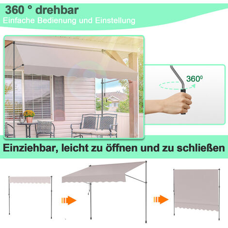 Endlich Schatten an sonnigen Tagen! Diese FANTASK Gelenkarmmarkise in dezentem Braun spendet angenehmen Schatten auf deinem Balkon, Terrasse oder vor dem Fenster. Mit 3x2,5 Metern Größe bietet sie reichlich Platz. Die praktische Handkurbel macht das Aus- und Einfahren super einfach - bis zu 2,5 Meter Auszug sind möglich. Das PU-Material ist wasserdicht, UV-beständig und leicht zu reinigen. Der stabile, pulverbeschichtete Aluminiumrahmen ist rostbeständig und hält auch bei Wind und Wetter stand. Perfekt für Cafés, Restaurants oder den privaten Geburtsbereich. Einfach montieren (Bohrmaschine benötigt) und den Sommer in vollen Zügen genießen - ohne direkte Sonneneinstrahlung!