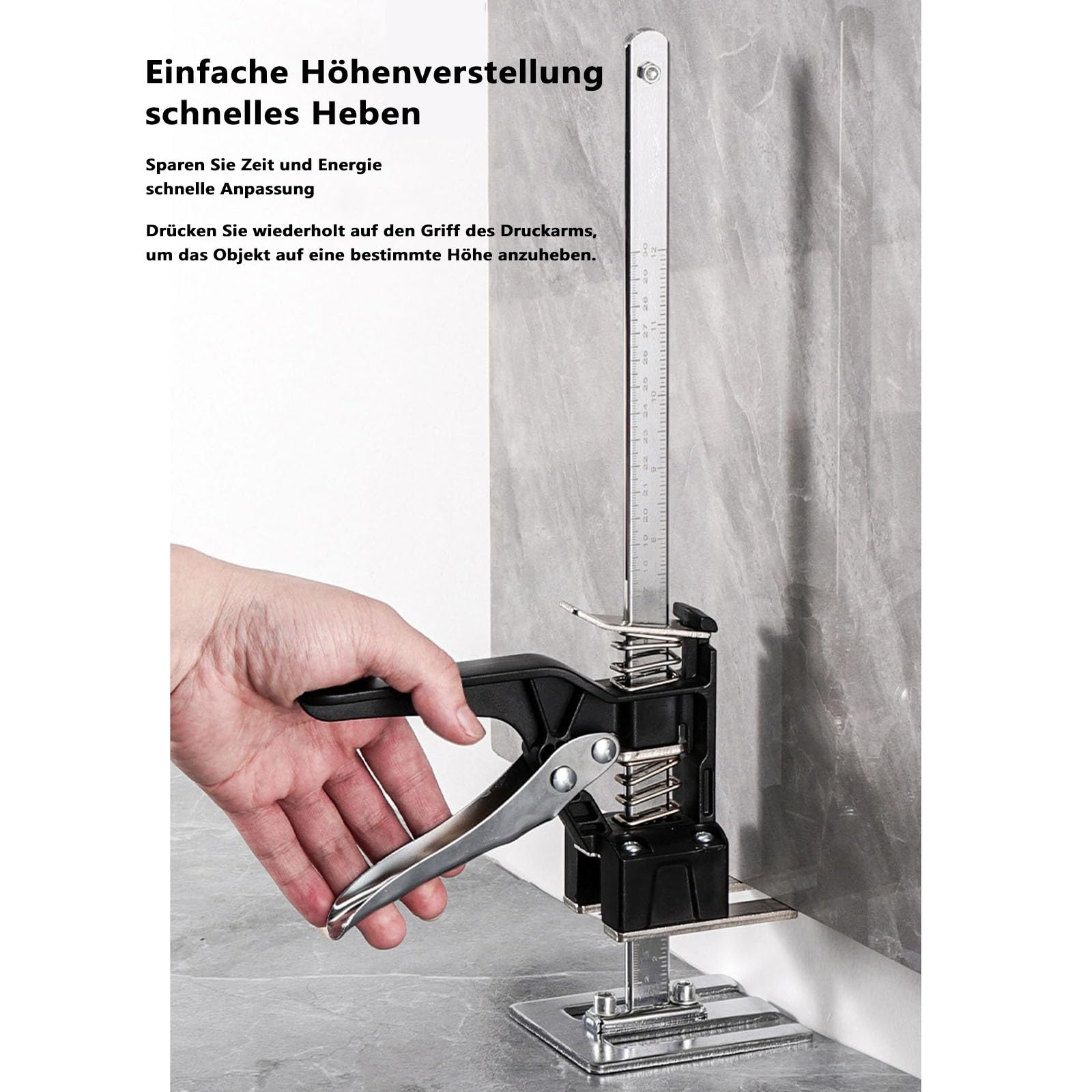 Dieses 5er-Set Hebearme ist ein echter Game-Changer für Handwerker und Heimwerker! Perfekt zum präzisen Positionieren von Fliesen, Gipskartonplatten und Möbeln. Jeder Arm trägt bis zu 250kg und ist von 1-6cm höhenverstellbar. Die dicke Schwammpolsterung schützt empfindliche Kanten vor Beschädigungen. Aus robustem Federstahl und ABS, mit dreieckigem Tragsystem für maximale Stabilität. Einfach zu bedienen - drehen zum Heben/Senken. Die Nietverbindung ohne Lötstellen garantiert Langlebigkeit. Ideal für Fliesenleger, Trockenbauer und alle, die schwere Platten millimetergenau positionieren müssen. Spart Zeit und Rücken!