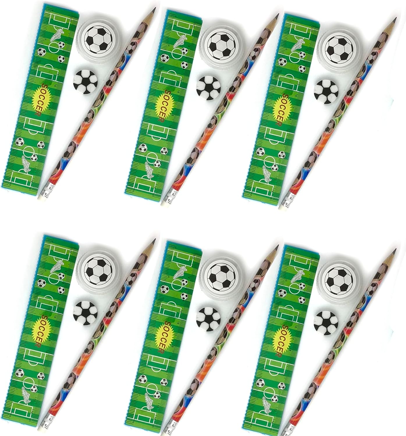 5x Fußball Schreibset - Lineal Bleistift Radiergummi Anspitzer Kindergeburtstag