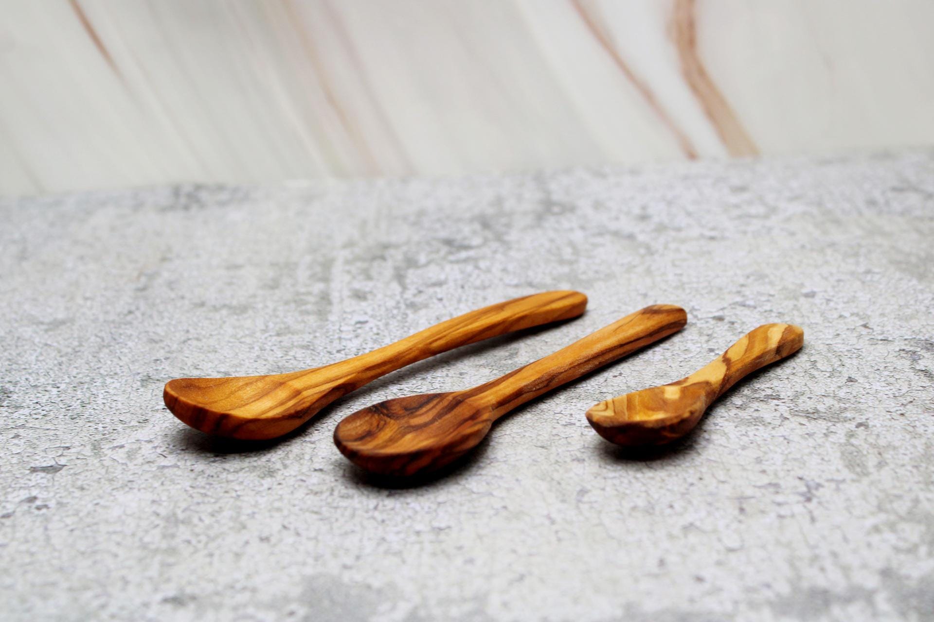 5x Handgefertigte Olivenholz Gewürzlöffel 6cm - Rustikale Mini Löffel Set