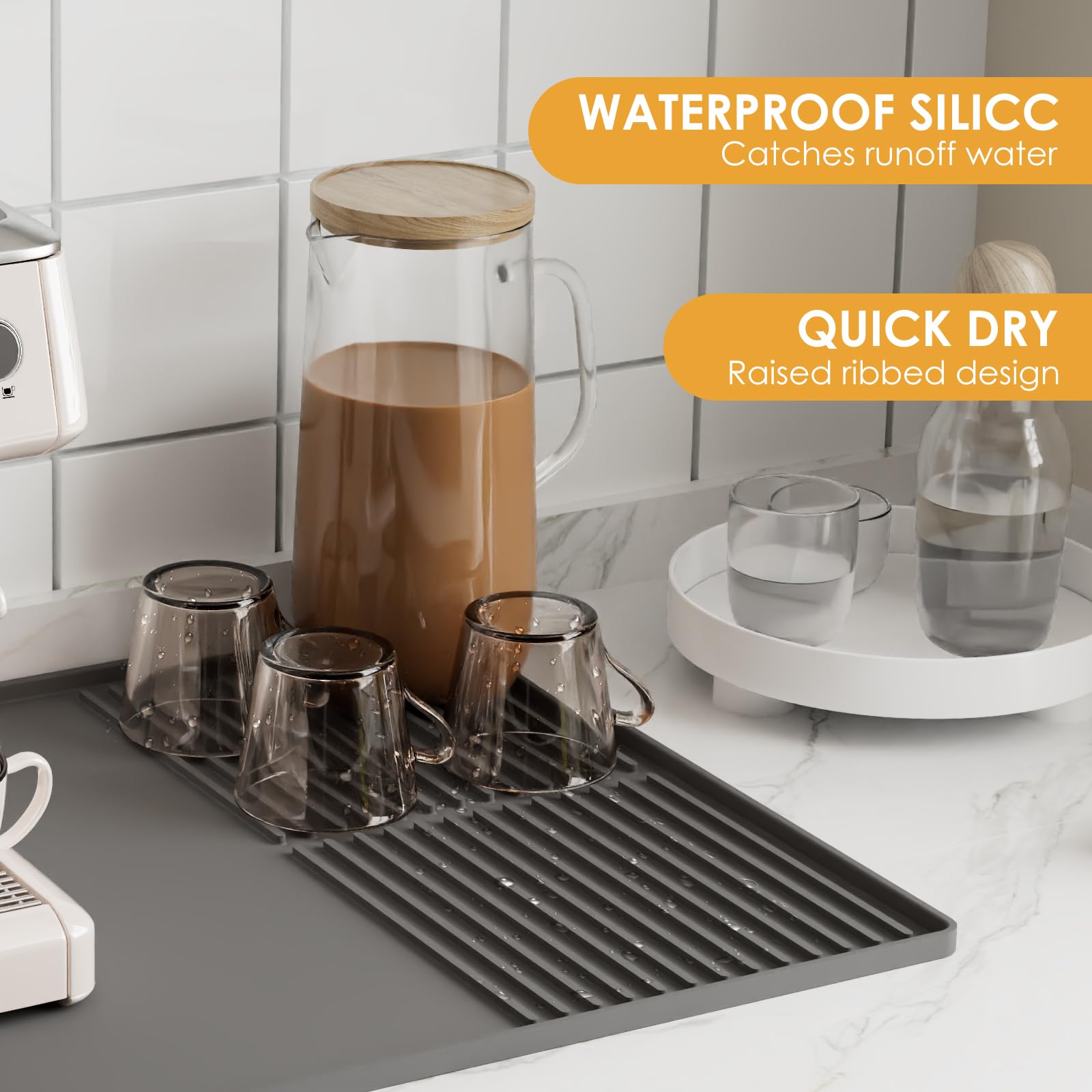 Rnivvi Silikon-Kaffeematte 30,5x48,3cm - Hitzebeständig & Wasserdicht Mit Erhöhtem Rand