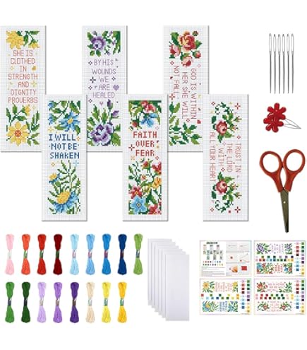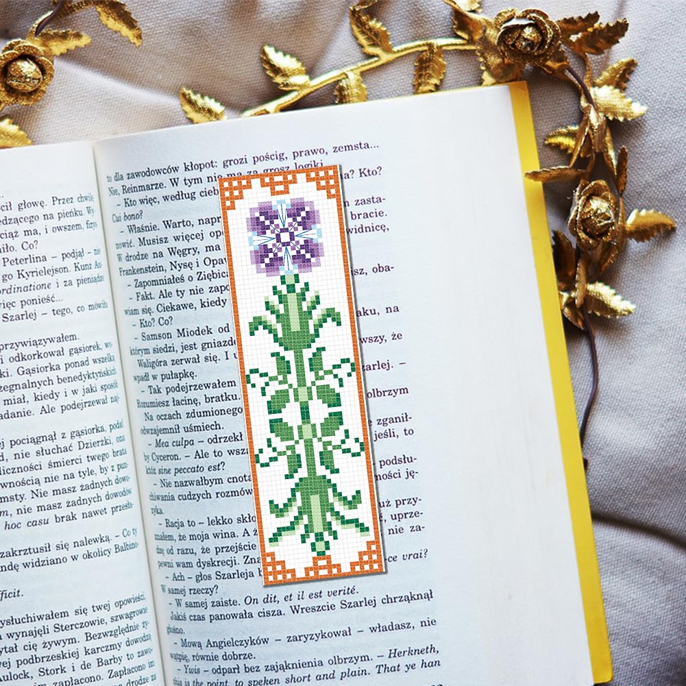 FREEBLOSS Kreuzstich Lesezeichen Set - 6 Blumenmuster DIY Stickset Für Anfänger