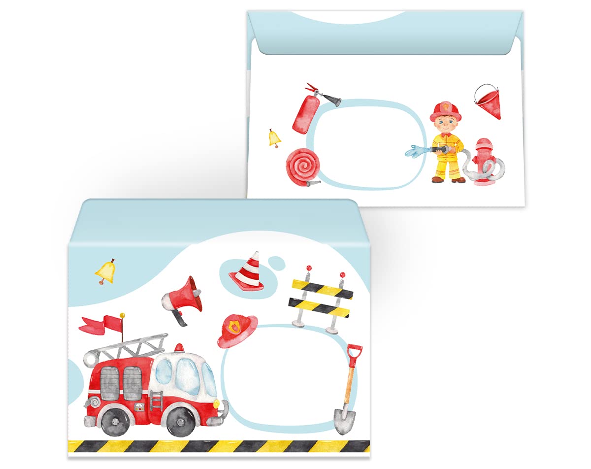 6 Einladungskarten Zum 6. Geburtstag Feuerwehr Thema - Komplettset Mit Umschlägen