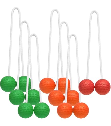Alter, dieses Leitergolf-Set bringt richtig Spaß für die ganze Familie! Im Set sind 6 Paar Bolas enthalten - 3 in Grün und 3 in Gelb, damit man super in Teams spielen kann. Jede Bola besteht aus zwei echten Golfbällen, die mit einem robusten Nylonseil verbunden sind. Die etwa 68cm langen Bolas sind perfekt dimensioniert für ein faires und unterhaltsames Spiel. Einfach die Bolas auf die Leiter werfen und Punkte sammeln - die Regeln sind so simpel, dass wirklich jeder mitmachen kann. Ob im Garten, am Strand, im Park oder sogar indoor - dieses Spiel macht überall Spaß! Perfekt für Geburtstagsfeiern, Grillabende, Familienfeste oder einfach nur für einen lustigen Nachmittag. Die Bälle sind aus strapazierfähigem PE-Material und halten auch bei intensivem Gebrauch problemlos durch. Ein super Spiel für Groß und Klein, das Motorik und Koordination fördert und garantiert für gute Laune sorgt!