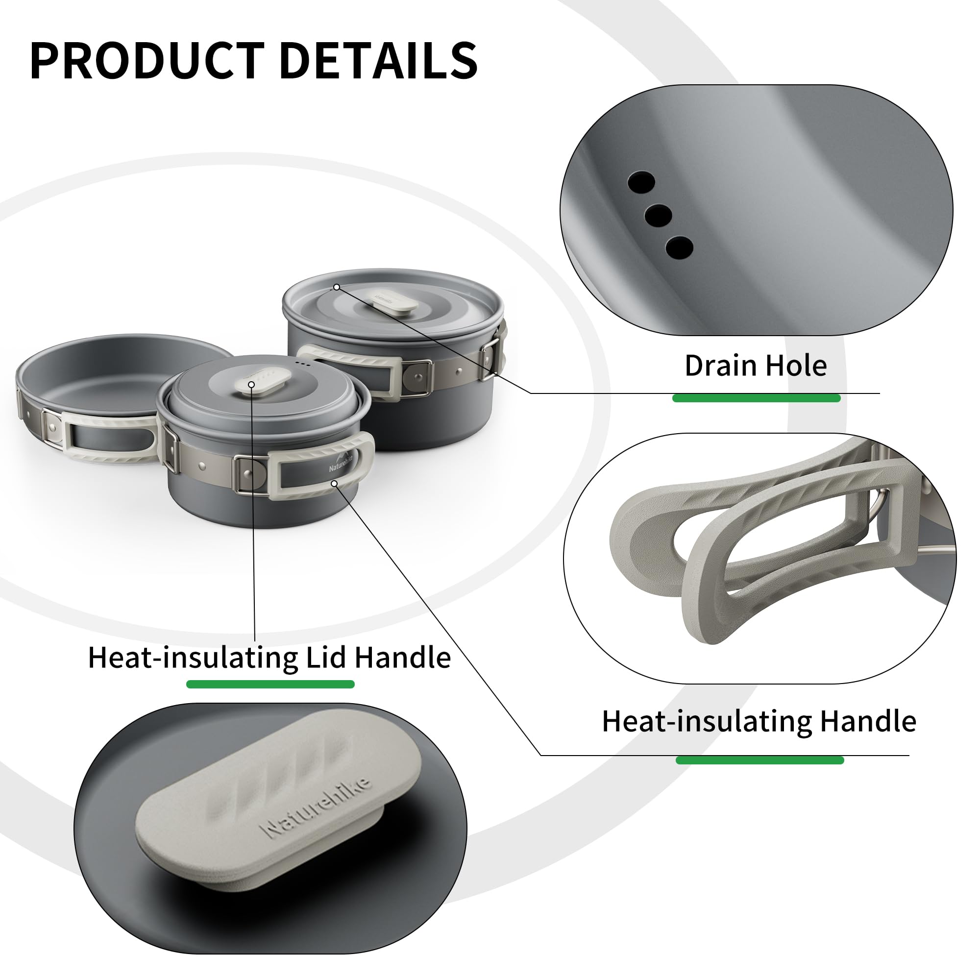 Camping-Kochen mal richtig gut! Dieses Naturehike-Set hat alles: 1,7L Topf (296g), Pfanne 17,5cm (195g), 0,8L Wasserkocher (191g). Super leicht, aber robust mit Antihaft-Beschichtung. Für 2-6 Personen, perfekt für Wandern oder Camping. Mit isolierten Griffen und Abflusslöchern. Funktioniert mit Gas, Spiritus oder Holzfeuer. Packmaß nur 18x11x18cm - passt in jeden Rucksack. So macht Kochen in der Natur Spaß!