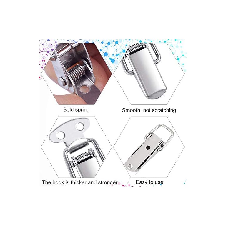 Schluss mit unsicheren Kisten! 🔒 Diese 6 Spannverschlüsse machen deine Boxen und Truhen absolut sicher - einfach umklappen und schon ist alles verschlossen.\n\nTechnische Daten:\n• Gesamtlänge: 93,4mm\n• Breite: 49,7mm\n• 5 Befestigungslöcher (3mm Durchmesser)\n• Mit Vorhängeschloss-Funktion\n\nSuper für:\n- Flightcases und Transportboxen\n- Selbstgebaute Holztruhen\n- Toolboxen und Werkzeugkisten\n- Schränke und Schubladen\n\nWarum sie so praktisch sind:\n- Einfache Bedienung - nur umklappen\n- Robuste Metallkonstruktion\n- Diebstahlschutz durch Vorhängeschloss\n- Einfache Montage\n\nMontage möglich:\n- Mit Schrauben (nicht im Lieferumfang)\n- Durch Schweißen\n- Mit Nieten\n\nEgal ob du:\n- Eine Transportbox sicherer machen willst\n- Eine selbstgebaute Truhe verschließen möchtest\n- Oder einfach Ordnung brauchst\n\nDiese Verschlüsse sind die Lösung! Sie sehen nicht nur gut aus, sondern halten auch was sie versprechen.\n\nWeißt du was? Mit 6 Stück im Set kannst du mehrere Boxen ausstatten oder Ersatz haben. Deine wertvollen Utensilien sind damit bestens geschützt! 💪