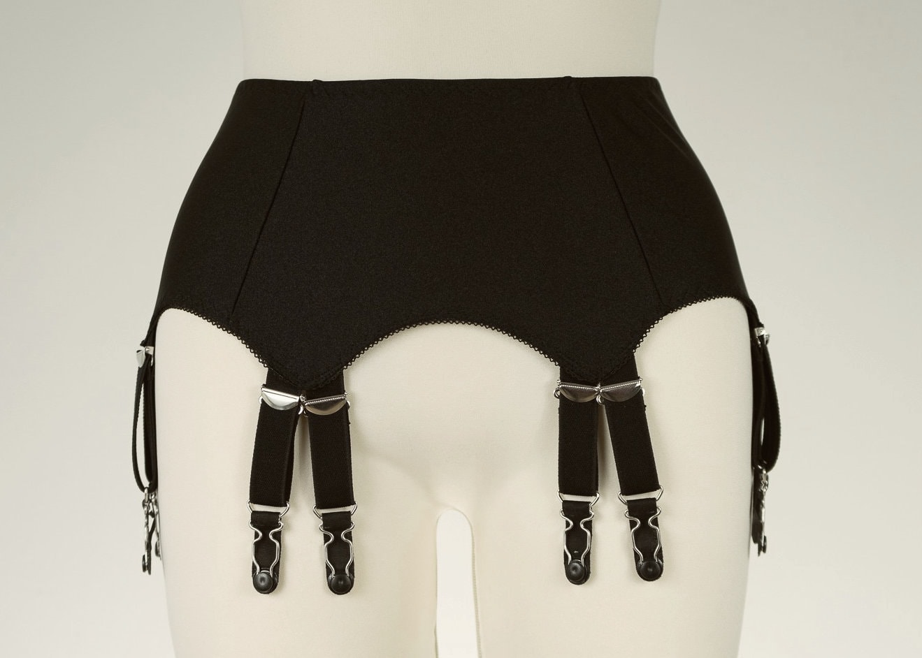 Verführerisch und praktisch! Dieser Strumpfbandgürtel mit 6 verstellbaren Trägern und 12 Metallclips hält deine Oberschenkelstrümpfe sicher an Ort und Stelle. Aus dehnbarem, durchsichtigem Netzstoff mit zarten Spitzenakzenten - sexy und elegant zugleich. Drei Reihen mit Schnallen sorgen für perfekten Sitz an den Hüften. Für verschiedene Körperformen geeignet, in Übergrößen erhältlich. Perfekt für besondere Anlässe, Hochzeitsnacht oder einfach um sich mal wieder verwöhnt zu fühlen. Strümpfe nicht im Lieferumfang - aber der Look ist garantiert umwerfend!