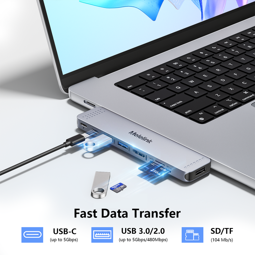 Erweitere dein MacBook mit diesem praktischen 6-in-1 USB C Hub! Perfekt kompatibel mit MacBook Pro und Air Modellen ab 2016, inklusive der neuesten M1/M2 Geräte. Der Hub bietet dir 3x SuperSpeed USB 3.0 Ports (bis zu 5 Gbit/s), einen SD/TF Kartenleser für Fotos und Videos, sowie einen Thunderbolt 3 Port mit 100W Power Delivery. So kannst du gleichzeitig dein MacBook aufladen, externe Festplatten anschließen, Speicherkarten lesen und weitere USB-Geräte nutzen. Das elegante Aluminium-Design passt perfekt zu deinem MacBook und sorgt für optimale Wärmeableitung. Besonders praktisch: Unterstützt 5K Videoauflösung und Datentransferraten bis zu 40 Gbit/s! Einfach anstecken und sofort nutzen - keine Treiberinstallation nötig. Das kompakte Design macht ihn zum perfekten Begleiter für unterwegs oder im Home-Office. Hol dir jetzt alle Anschlüsse, die dir an modernen MacBooks fehlen!