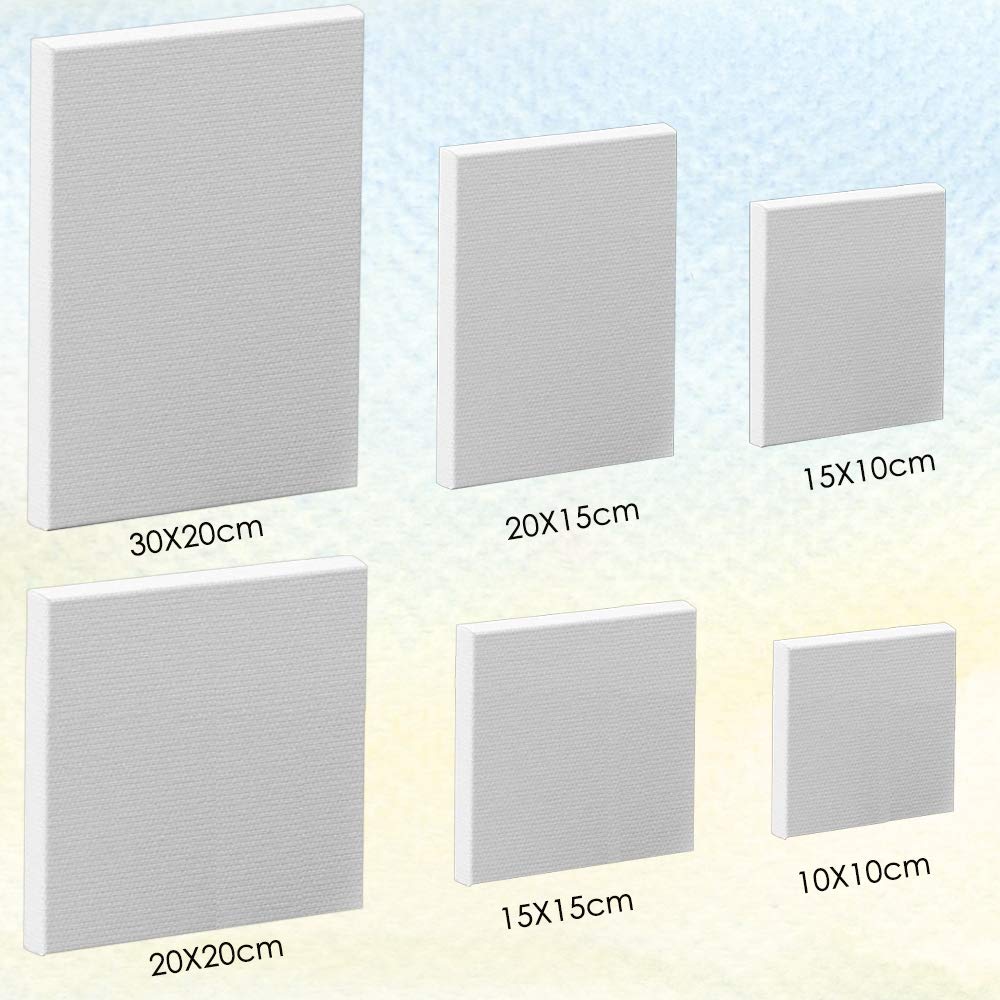Perfekt für kreative Köpfe! Dieses 6-teilige Keilrahmen-Set bietet dir drei verschiedene Größen für deine Kunstwerke. Mit 30x20cm, 20x15cm und 15x10cm ist für jedes Projekt die passende Leinwand dabei.