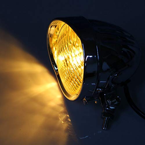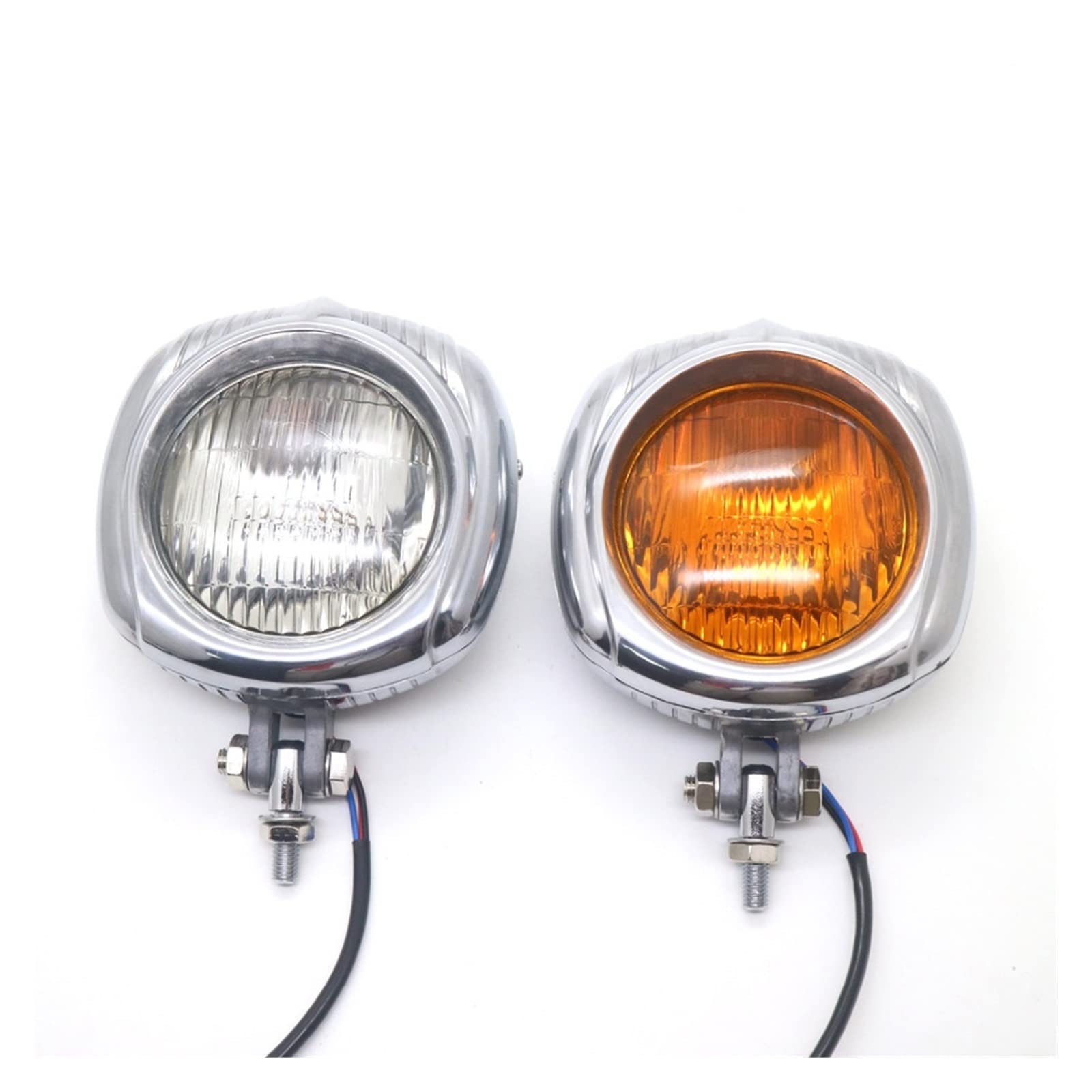 Retro Motorrad Scheinwerfer 60/55W - Chrom/Bernstein Für Cruiser & Chopper