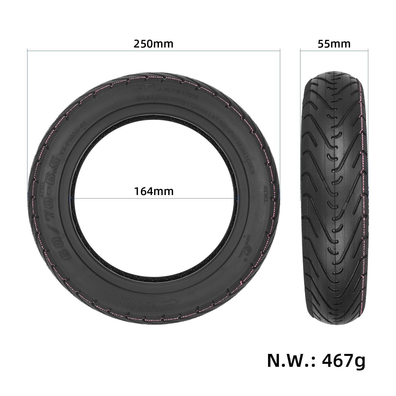 TREFAN Innenrohr Für Ninebot Max G30 - 60/70-6,5 10 Zoll Mit 90° Ventil