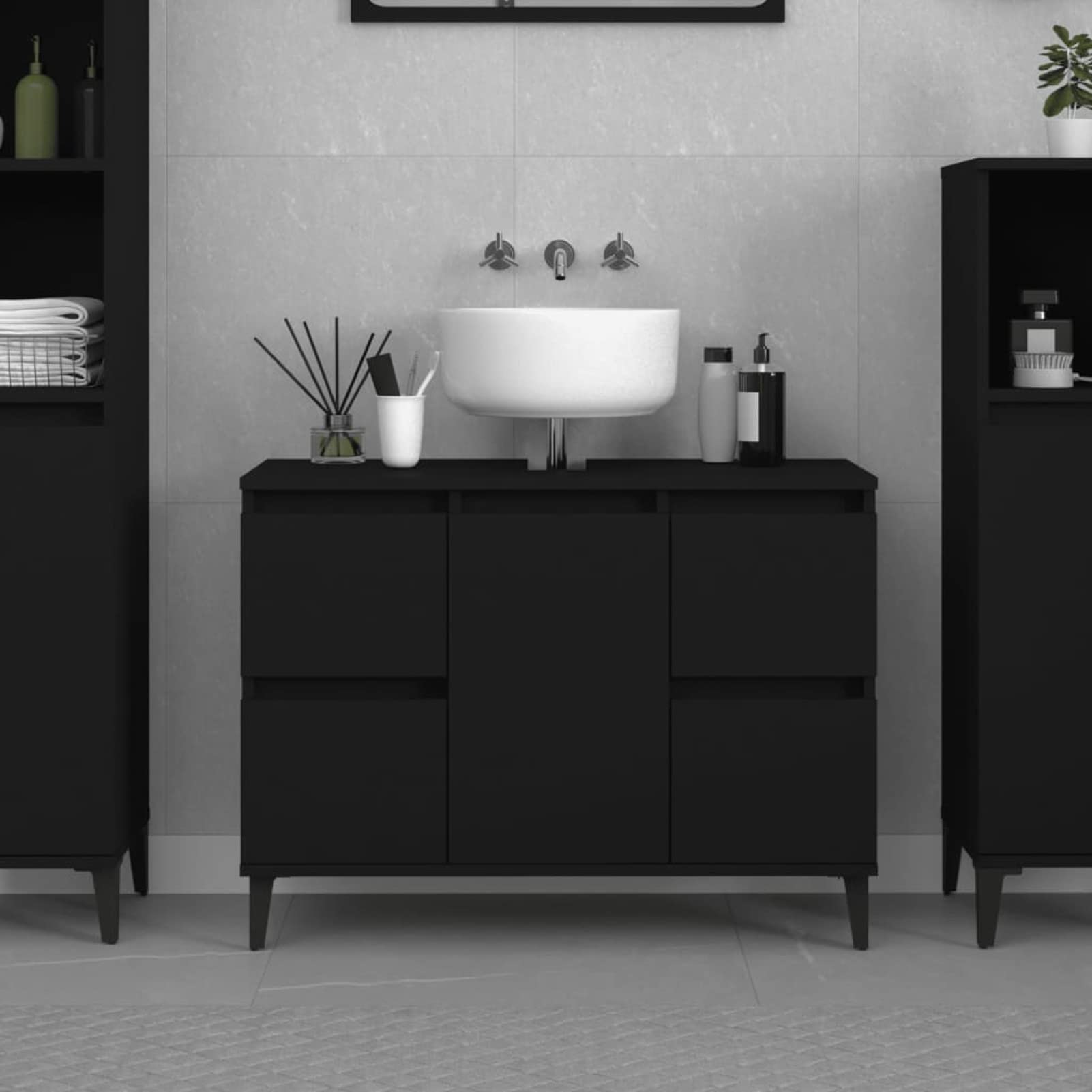 Badspiegel Mit Unterschrank Betongrau - 60 Cm Badezimmer Möbel