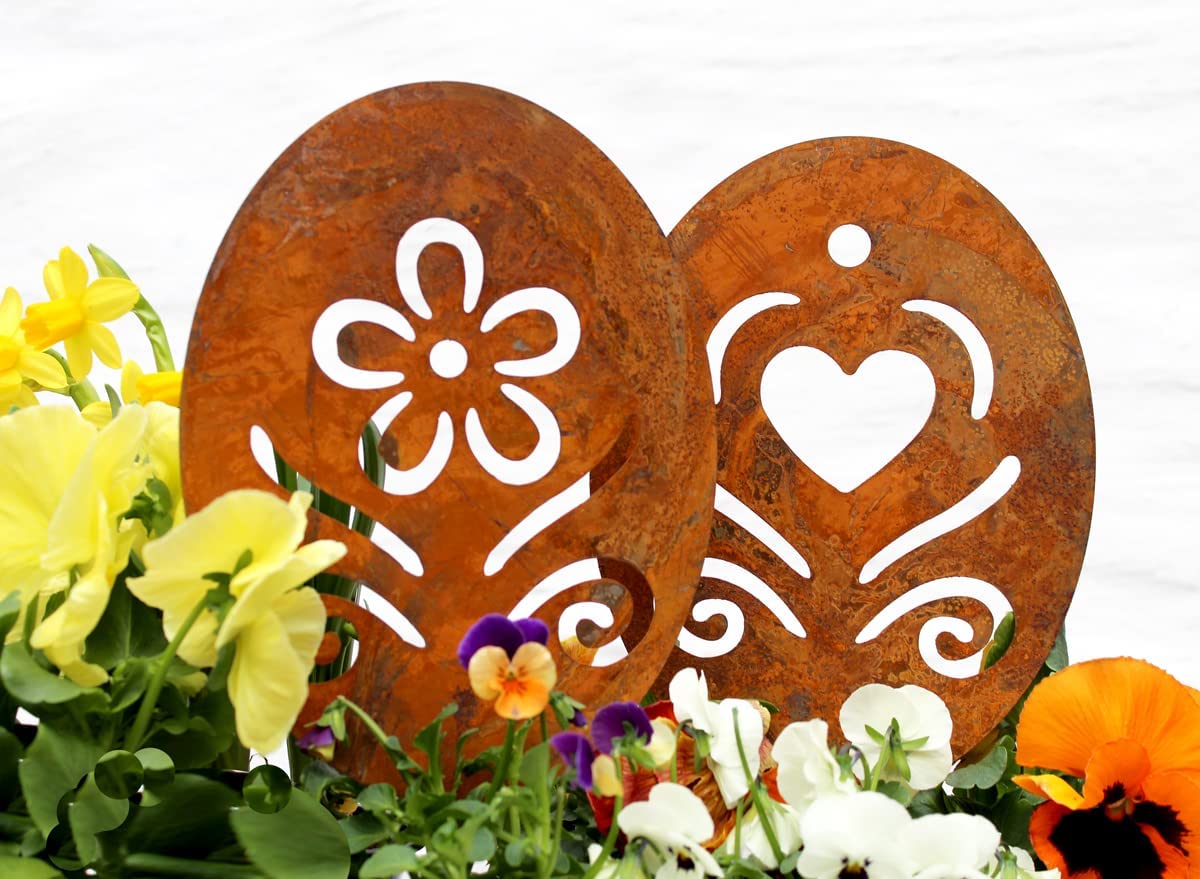 Bring Charme in deinen Garten! Dieses 2er-Set Gartenstecker von levandeo mit filigranen Blumen-Motiven verleiht deinen Beeten, Töpfen oder Rabatten sofort ein nostalgisches Flair. Hergestellt aus Metall mit natürlicher Rost-Optik, sind die Stecker jeweils ca. 60 cm hoch und damit ein echter Blickfang. Die warme Rostfarbe passt super zum Landhausstil, zu Vintage-Deko oder einfach zu einem naturnahen Garten. Einfach in die Erde stecken und schon zaubern die freundlichen Blumen eine fröhliche Atmosphäre. Perfekt, um zwischen Stauden, Blumen oder Kräutern Akzente zu setzen. Und das Beste: Die Deko ist wetterfest und hält auch mal was aus. Einfach aufstellen und sich an der märchenhaften Stimmung erfreuen!