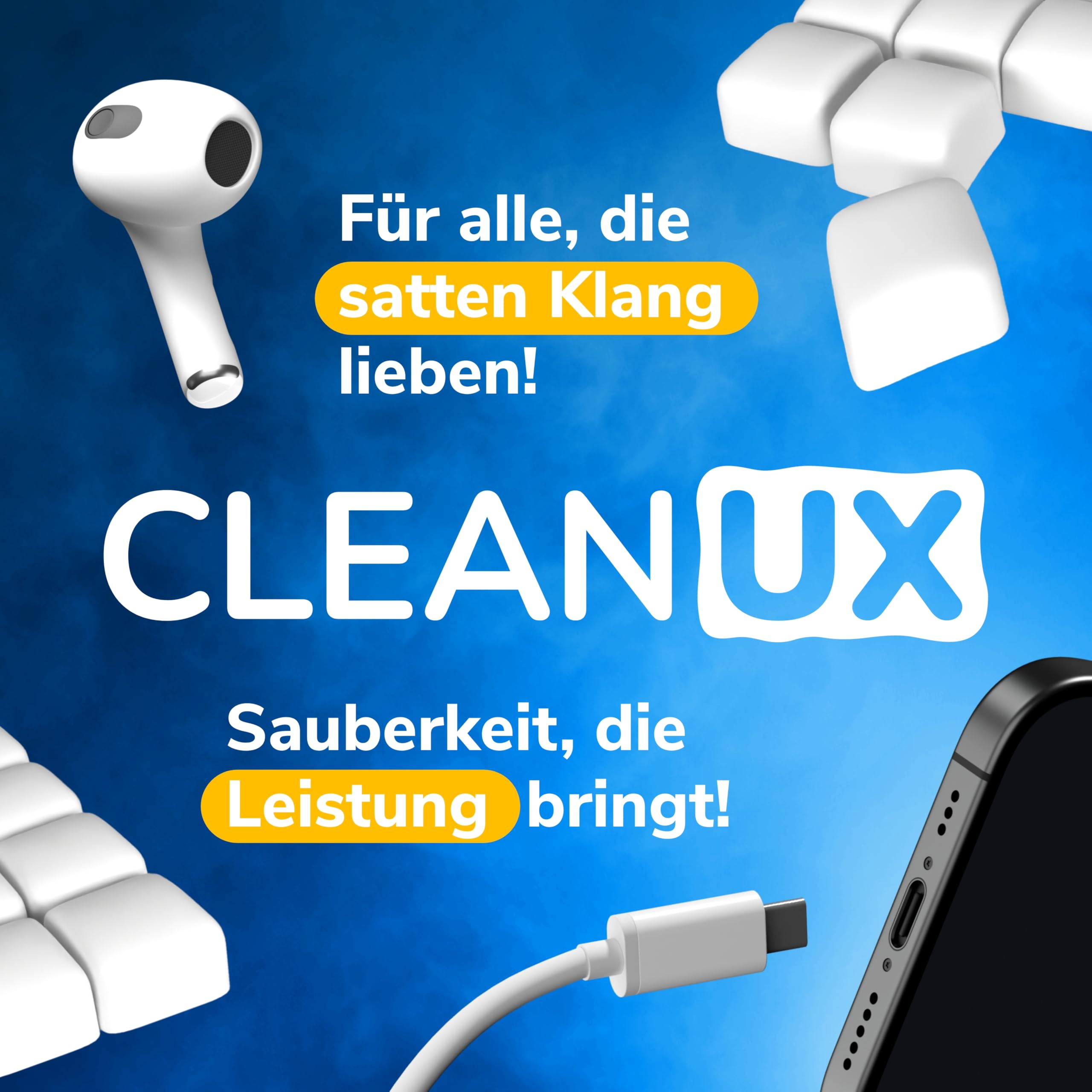 Boah, dein iPhone ist voller Krümel? Diese Reinigungsknete ist der absolute Game-Changer! Einfach aus der Ladebuchse oder den Lautsprechern drücken - und alle Staub-Flusen sind weg! 60 Portionen in der Box - reicht für ewig! Funktioniert mega für iPhone, iPad, AirPods - alles mit Lightning oder USB-C. Komplett-Set mit Multifunktionswerkzeug und Mikrofasertuch. Total befriedigend anzusehen wie der ganze Dreck rauskommt! Auch super als Geschenk für Technik-Freunde. Einfach Knete rein, warten, rausziehen - und dein Handy ist wie neu! Nie wieder verstopfte Lautsprecher!