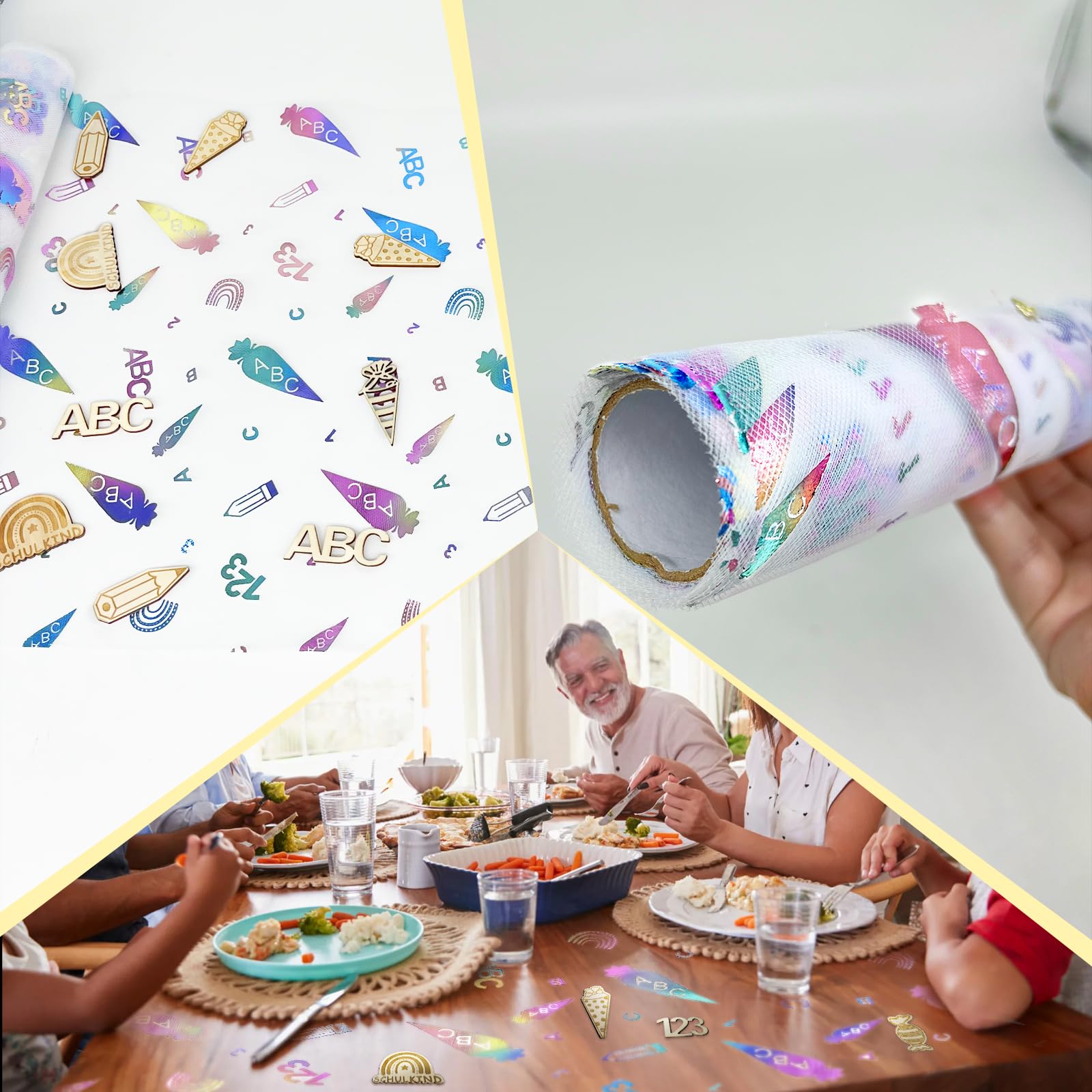 Mach den 1. Schultag deines Kindes unvergesslich mit diesem wunderschönen Tischläufer! 600cm lang und 29cm breit - perfekt für die große Einschulungsfeier. \\n\\nMit süßen Motiven: Zuckertüten, 123, ABC - für Jungen und Mädchen gleichermaßen geeignet. Aus robustem Polyester, reißfest und glänzend. \\n\\nEinfach zuschneidbar - passe die Länge mit der Schere genau deinem Tisch an. Schafft eine fröhliche, festliche Atmosphäre für diesen besonderen Tag. \\n\\nNicht nur für die Einschulung, sondern auch für andere Schulfeiern oder Kindergeburtstage. Der Hingucker auf deinem Festtisch!