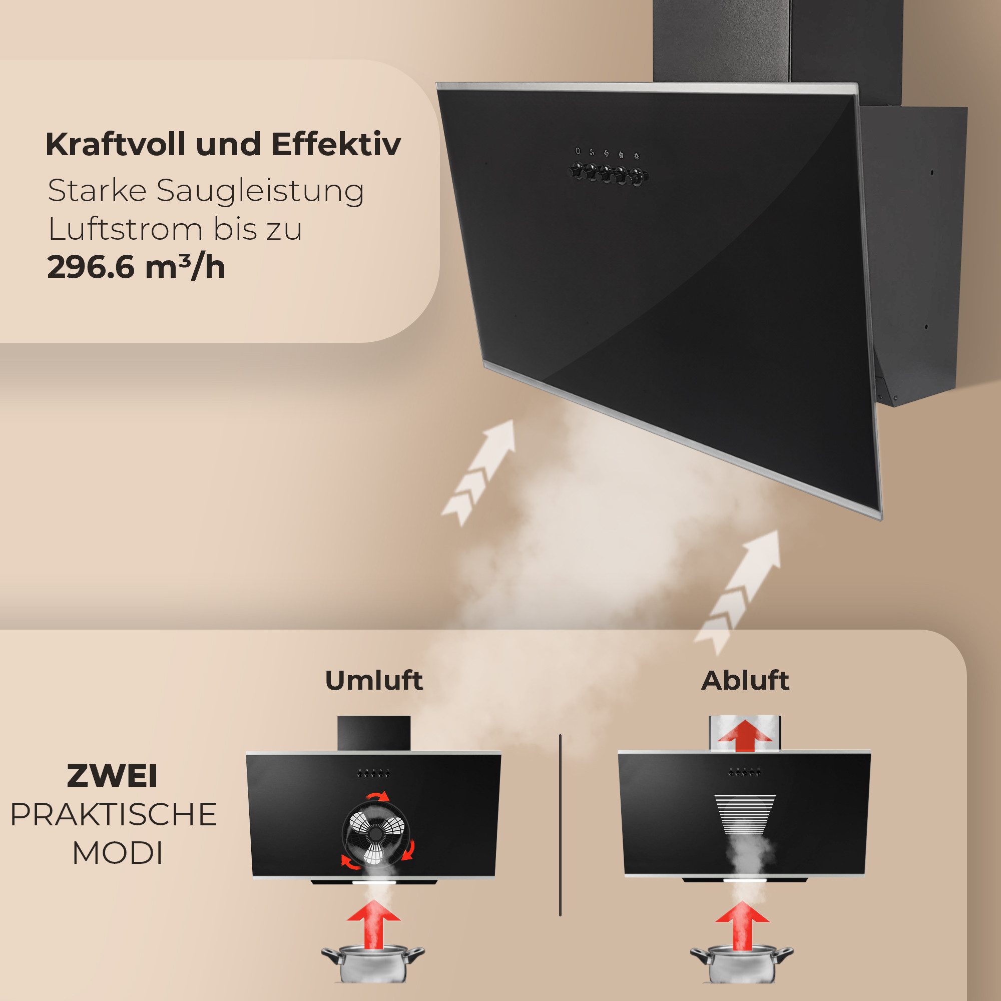 Refsta KORE Dunstabzugshaube 60cm - 800 M³/h, Touch-Bedienung, Umluft/Abluft