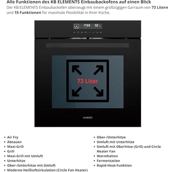 KB-ELEMENTS Einbaubackofen 60cm Mit Aqua Clean - 73 Liter, Circle Fan Heater, EU-Stecker