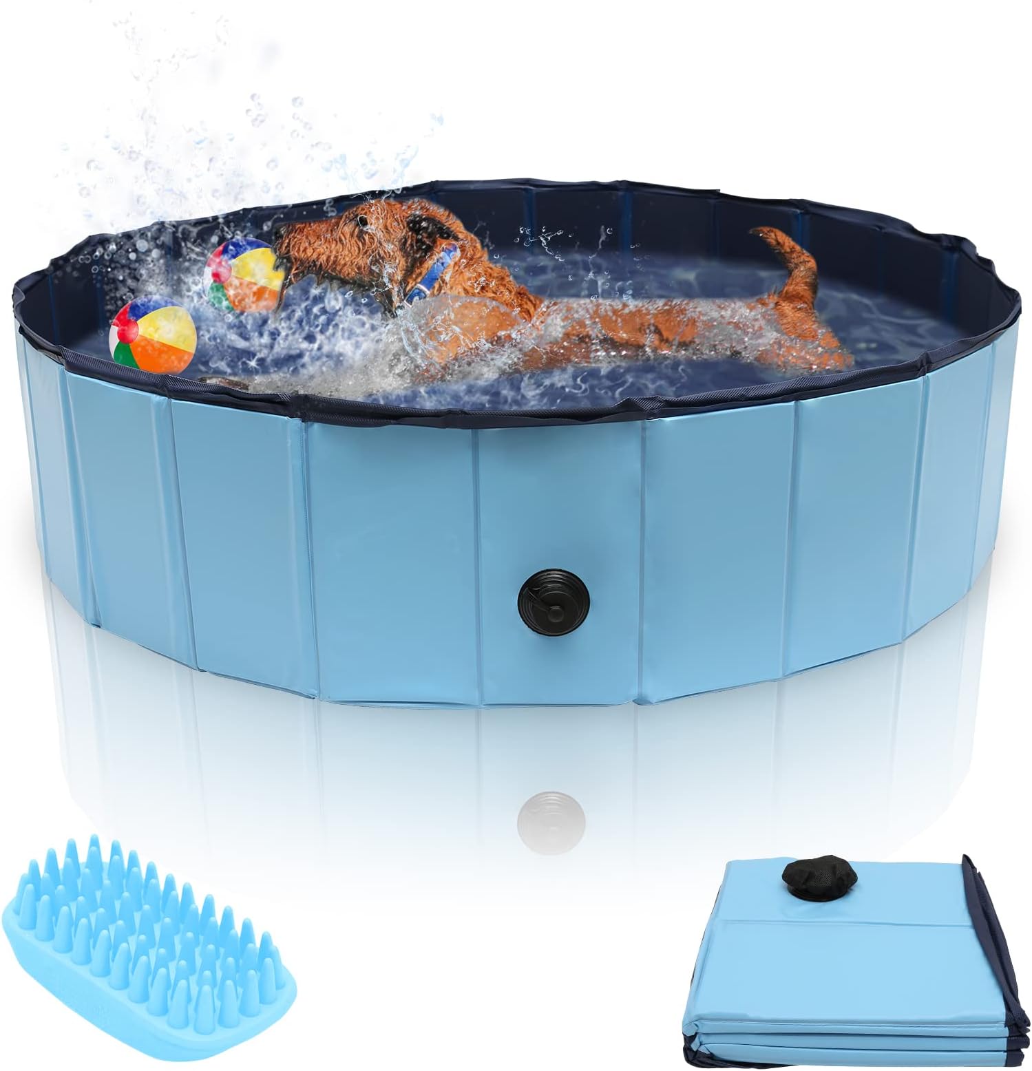 Hundepool Faltbar 60cm - PVC Planschbecken Mit Ablassventil - Für Hunde Bis 20kg