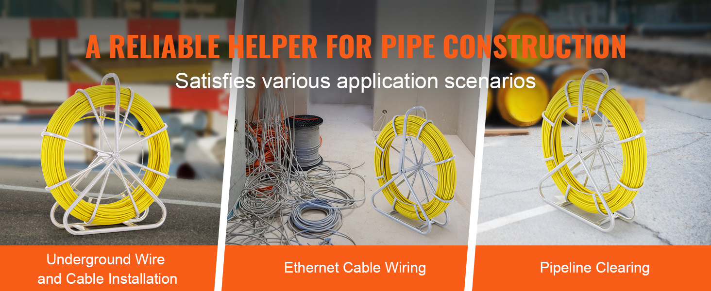 VEVOR Einziehband 60m - Fiberglas Kabelzieher Für Elektroinstallationen & Wandverkabelung