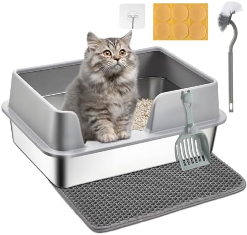 Oh, wie praktisch! Diese Edelstahl-Katzentoilette ist ein Traum für alle Katzenbesitzer. Mit 60x40x30 cm richtig groß - auch für große Katzen perfekt! Fassungsvermögen: über 30 Liter Streu - reicht für 3-5 Tage. Der hohe, nahtlose Rand verhindert lästiges Herausspritzen - keine Sauerei mehr! Aus rostfreiem Edelstahl - leicht zu reinigen, geruchsneutral und langlebig. Inklusive Schaufel, 4 Anti-Rutsch-Matten und Katzenmatte (42x28,5 cm). Die elektrolysierte Oberfläche verhindert das Anhaften von Streu - super easy zu säubern! Deine Katze wird's lieben und du hast weniger Arbeit. Wenn du nach einer hochwertigen, praktischen Katzentoilette suchst - diese ist perfekt! Hol sie dir und mach deiner Katze eine Freude.