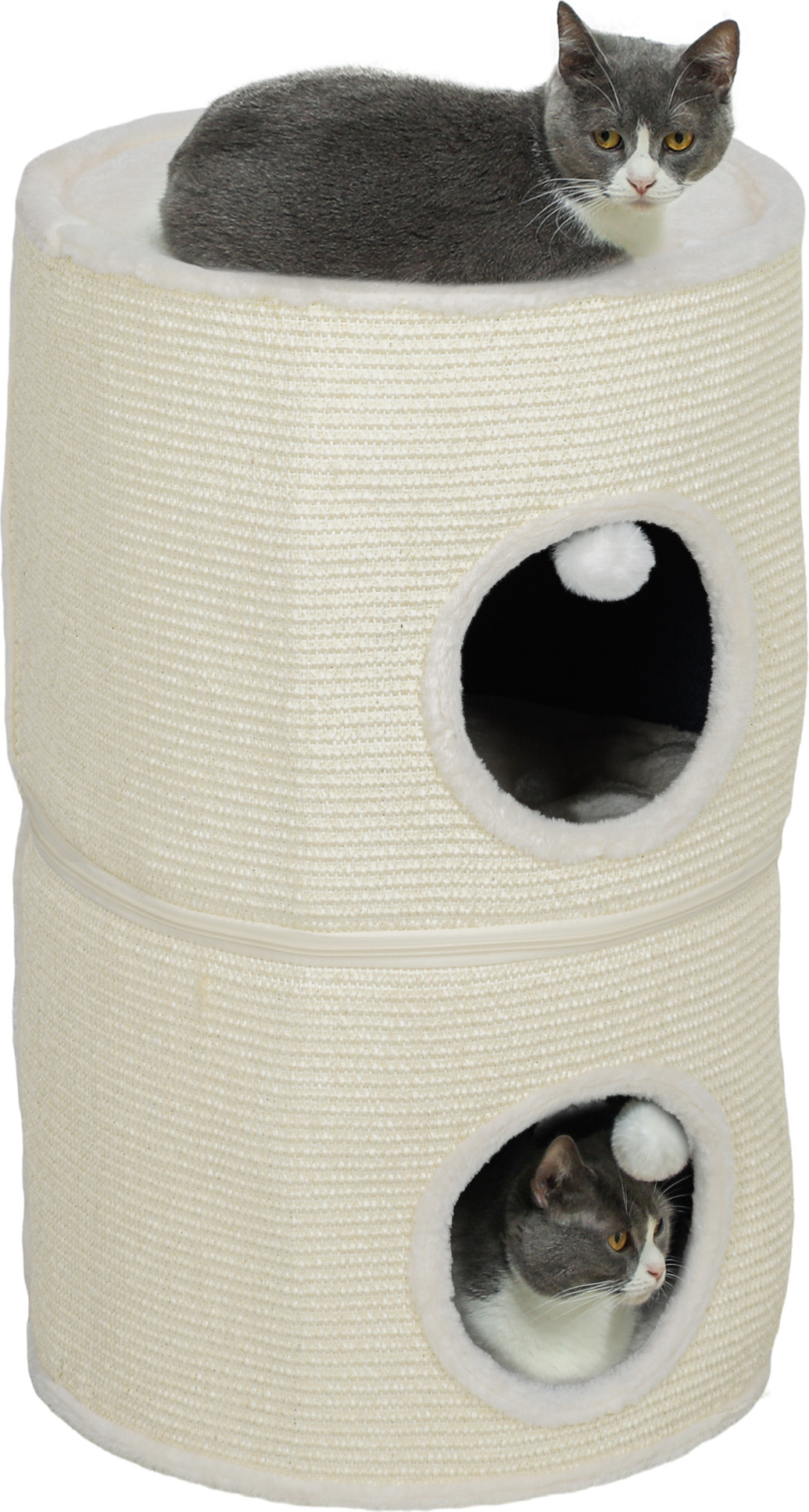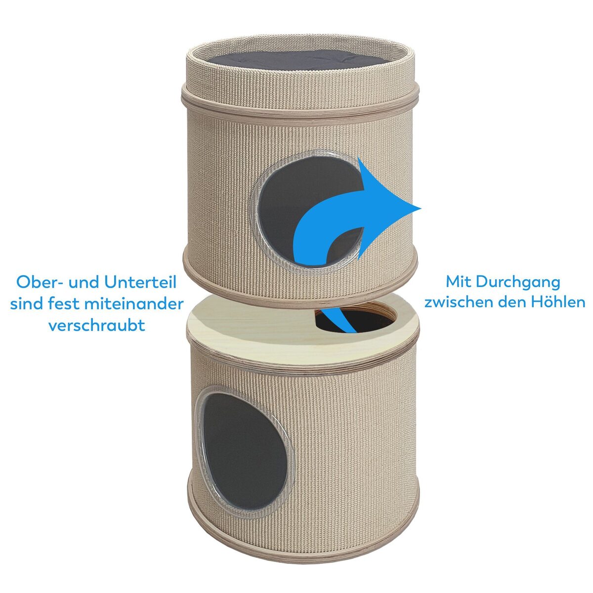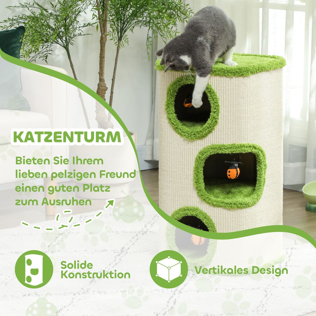 PawHut Kratztonne Katzen 61cm - Mit 2 Höhlen & Sisal Kratzfläche