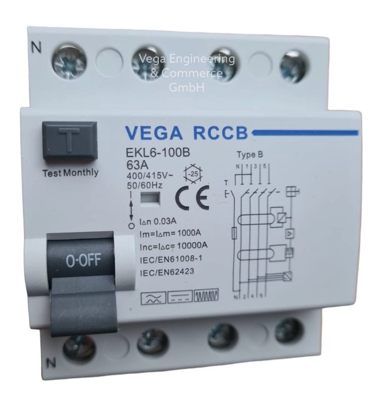 FI-Schutzschalter Typ B 63A 30mA - Für Elektroauto Ladestationen 6KA