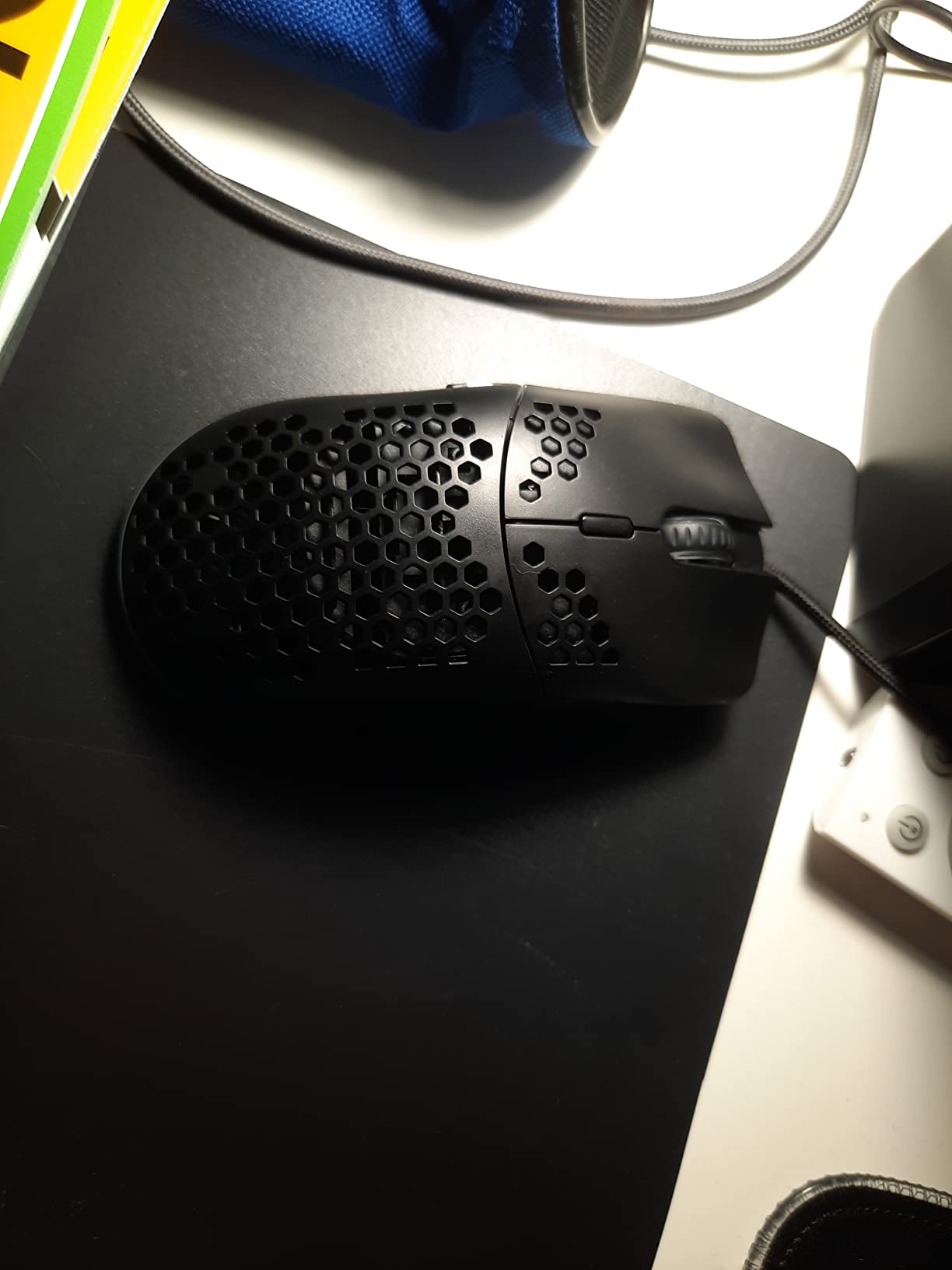Boah, diese Gaming-Maus sieht ja richtig krass aus! Mit dem Bienenwaben-Design und RGB-Beleuchtung macht die was her. Nur 69 Gramm leicht - deine Hand wird nicht mehr so schnell müde, auch nach stundenlangem Zocken.\\n\\n6 einstellbare DPI-Stufen von 800 bis 6400 - da findest du garantiert die perfekte Geschwindigkeit für dein Spiel. Und mit 6 programmierbaren Tasten kannst du dir deine Lieblings-Befehle drauflegen. Die RGB-Beleuchtung hat 6 verschiedene Modi - oder du machst sie einfach aus, wenn's dir zu bunt wird.\\n\\nSuper ergonomisch geformt, passt sich super an deine Hand an. Die matte Oberfläche liegt gut in der Hand und das Wabendesign sorgt dafür, dass deine Hand nicht so schnell schwitzt. Einfach USB-Kabel einstecken (1,7m lang) und los geht's! Kompatibel mit Windows, Mac, PS4, Xbox - eigentlich mit allem.\\n\\nFalls du die Tasten programmieren willst, lad dir einfach die Software runter. Aber Achtung: Die RGB-Taste selbst kann nicht programmiert werden. In Rosa, Schwarz, Weiß, Blau und Grün erhältlich - such dir deine Lieblingsfarbe aus!