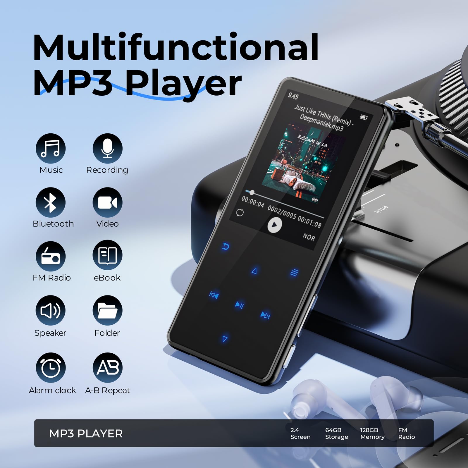 64GB MP3 Player Mit Bluetooth 5.3 - Musikplayer Für Kinder & Senioren