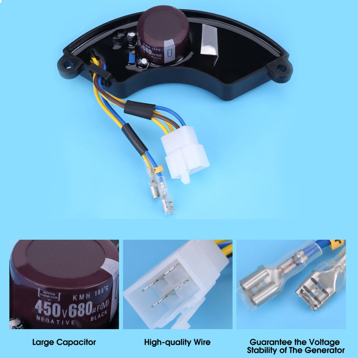 Generator-Besitzer, dieser AVR-Spannungsregler ist genau das, was ihr braucht! Perfekt für 2-Phasen-6-Draht-Benzingeneratoren von 6,5kW bis 8,5kW. Mit 450V und 680uF - das ist richtig stark! Das Aluminiumgehäuse sorgt für gute Wärmeableitung und optimalen Schutz. Wichtig: Ein AVR mit höherer Leistung funktioniert auch bei schwächeren Generatoren, aber umgekehrt nicht! Die meisten Ersatz-AVRs schaffen nur 5-6kW - unseres packt die großen Jungs! Falls die Spannung nicht perfekt ist: Einfach die kleine Bronzeschraube im blauen Gummiteil drehen - im Uhrzeigersinn erhöht die Spannung, gegen den Uhrzeigersinn verringert sie. Elektrostart-fähig und super einfach zu installieren. Achtung: Wenn dein Generator einen Kondensatorspannungsregler hat, brauchst du einen kompatiblen Kondensator! Bei Problemen sind wir 24/7 für dich da - einfach eine E-Mail schreiben! Einfach ein zuverlässiges Teil für stabile Generatorleistung!