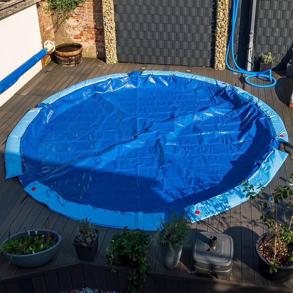Perfekter Schutz für deinen Pool im Winter! Dieses 6er-Set mit Eck-Wassersäcken sorgt dafür, dass deine Poolabdeckung sicher bleibt. Mit den Maßen 570 x 565 mm speziell für Pool-Ecken entwickelt, wo normale Wasserschläuche oft nicht passen. Aus robustem 0,4 mm dickem PVC, das reiß- und stichfest ist und auch bei rauem Winterwetter hält. Der auslaufsichere Schraubverschluss mit Gummidichtung macht das Befüllen mit dem Gartenschlauch zum Kinderspiel. Die hochfrequenzverschweißten Nähte (1,5 cm dick) garantierte absolute Dichtigkeit. Einfach zu 50-70% befüllen, damit bei Frost genug Platz für Ausdehnung bleibt. UV-beständig und bei jedem Wetter einsetzbar - ob bei sengender Hitze oder eisiger Kälte. Verhindert, dass Wind die Abdeckung anhebt und hält Blätter und Schmutz fern. So bleibt dein Pool sauber und der Frühjahrsputz wird zum Kinderspiel!