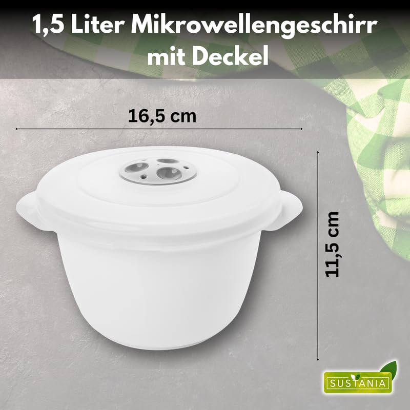 SUSTANIA Mikrowellengeschirr 6er Set 1,5l | Mit Dampfregelventil & Deckel | Spülmaschinenfest | Hergestellt In EU