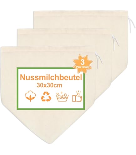 Selber Nussmilch machen? Mit diesen YFaith Nussmilchbeuteln wird's super einfach! Im 6er-Set mit je 3 Beuteln in 100er und 120er Maschenweite. Aus hochwertigem Nylon - flexibel, reißfest und lange haltbar. Perfekt für Mandelmilch, Sojamilch, Säfte oder zum Filtern von Tees. Der praktische Kordelzug verschließt sicher, nichts läuft aus. Einfach den Brei einfüllen, zuziehen und auspressen - schon hast du cremige Milch ohne Rückstände. Leicht zu reinigen und immer wieder verwendbar. Ideal für zu Hause, Cafés oder Saftbars. Mach deine eigene Pflanzenmilch - bestell diese praktischen Siebe!