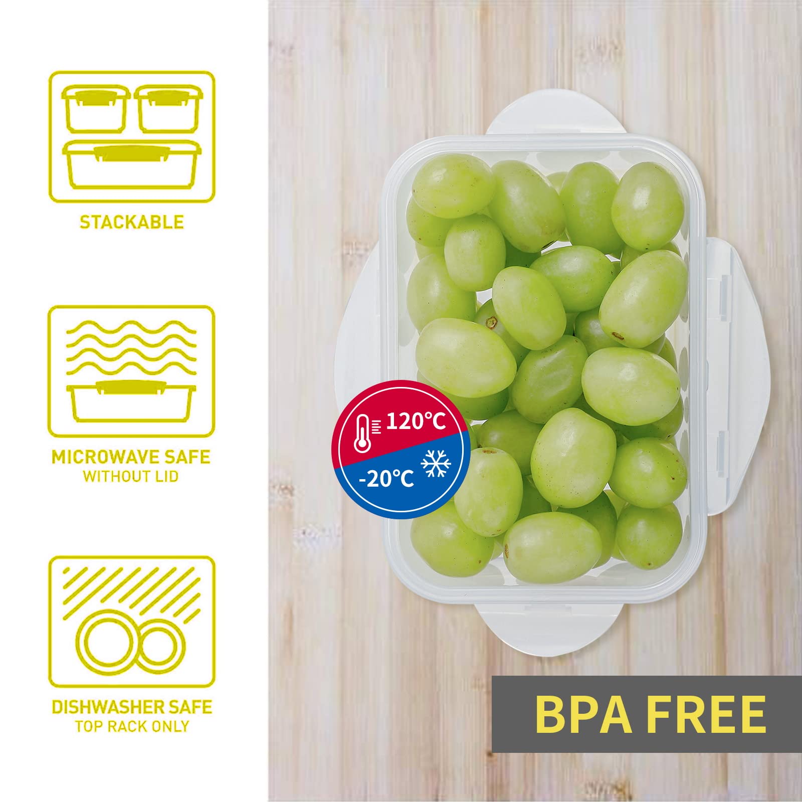 Für deine Küche sind diese 6 Lebensmittelbehälter super praktisch! Jede Box hat 700ml Fassungsvermögen - perfekt für Joghurt, Obst, Snacks oder Reste. Mit cleverem Clip-System und Silikondichtung - 100% luftdicht und auslaufsicher! Aus transparentem BPA-freiem Kunststoff, siehst also sofort was drin ist. Mikrowellen- und gefriergeeignet, dazu noch stapelbar - spart mega Platz. Perfekt für Meal Prep, Lunchbox oder Vorratshaltung. Macht deine Küche endlich ordentlich und organisiert!