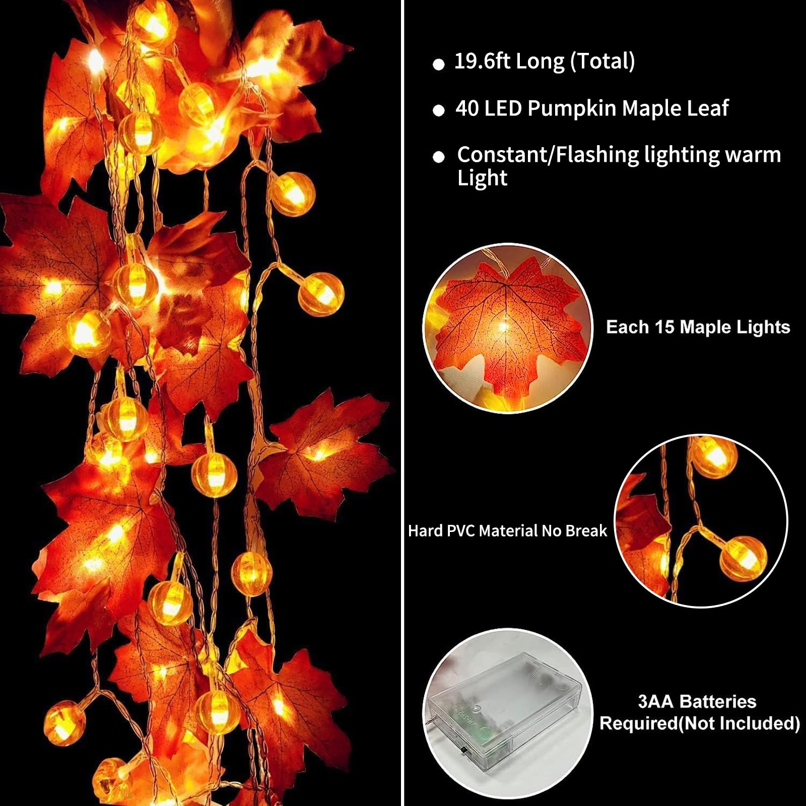 Das Design mit Ahornblättern und kleinen Kürbissen ist einfach niedlich. Perfekt für Halloween, Erntedankfest, Herbstpartys oder sogar Weihnachten. Ob am Kamin, an der Treppe oder an der Wand - überall macht sie eine gute Figur!