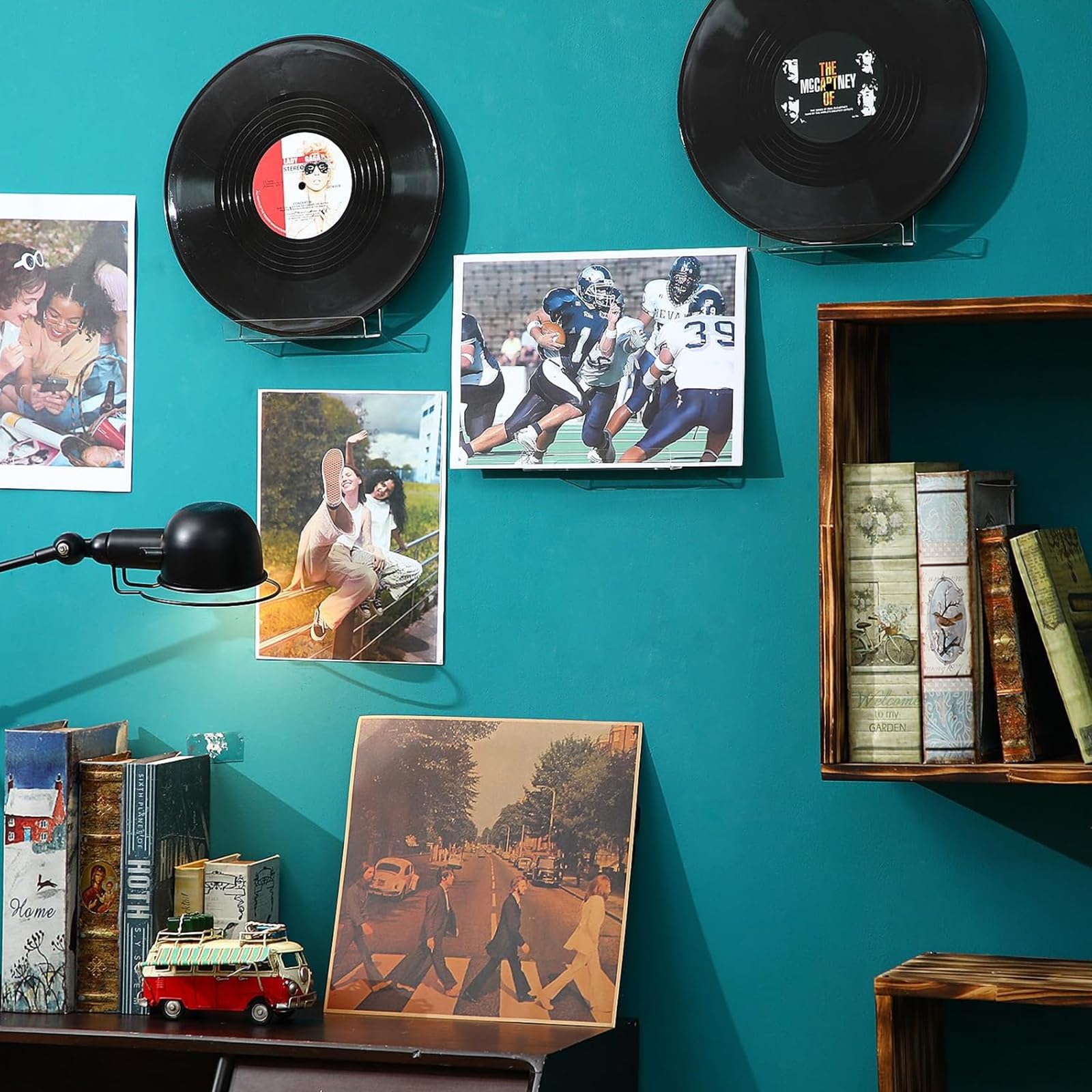 Endlich deine Schallplatten-Sammlung stylish präsentieren! Dieses 6er-Set transparenter Acryl-Halterungen macht's möglich. Jede Halterung ist 10x3,5x3cm groß, superleicht (150g) und hat eine abgerundete Kante damit nichts herunterfällt. Einfach an die Wand schrauben - Schrauben und Dübel sind schon dabei! Sieht ultra-modern aus und deine Platten bleiben gut sichtbar. Nicht nur für Vinyl, sondern auch für Fotos, Zeitschriften oder kleine Dekorationen. Macht aus jeder Wand sofort einen Hingucker!