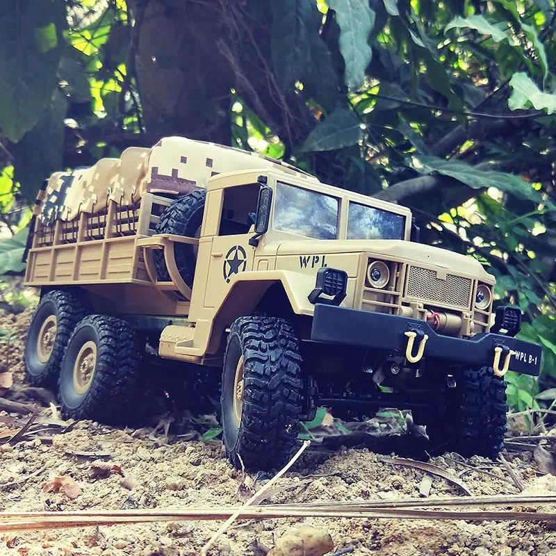 Abenteuer pur mit diesem robusten RC-Militär-LKW! Der QIYHBVR 6x6 Army Truck ist ein ferngesteuertes Monstergerät für echte Geländefans. Mit vollproportionaler Steuerung kontrollierst du präzise Vorwärts- und Rückwärtsfahrt, Lenkung und sogar zwei Geschwindigkeitsstufen. Der starke 4WD-Antrieb meistert jedes Terrain - ob Sand, Gras oder Schotter. Die Beleuchtung macht Nachtfahrten zum Erlebnis, und der realistische Blattfeder-Stoßdämpfer sorgt für authentisches Fahrverhalten. Mit C-förmigem Metallträger und Leiterrahmen ist dieser LKW extrem stabil und hält auch mal einen heftigen Aufprall aus. Das 46,7 cm lange Fahrzeug wird mit wiederaufladbarer 7,4V 900mAh Lithiumbatterie geliefert (Ladezeit ca. 3 Stunden, Spielzeit bis zu 50 Minuten). Die 2,4G Fernsteuerung hat eine Reichweite von etwa 40 Metern. Perfekt für Kinder und Erwachsene, die Action und robustes RC-Spielzeug lieben. Alles dabei: Auto, Fernbedienung, Akku, Ladekabel und Anleitung. Einfach Batterien in die Fernbedienung und dann kann's losgehen!