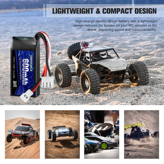 URGENEX FCX24 Akku 2S 7.4V 600mAh - Lipo Battery Für RC Auto Mit USB Lader