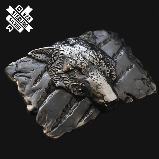 Longcreek Wolf Gürtelschnalle Wikinger Design | Zinklegierung 7,6x5,8cm | Für Gürtel Bis 4cm Breite