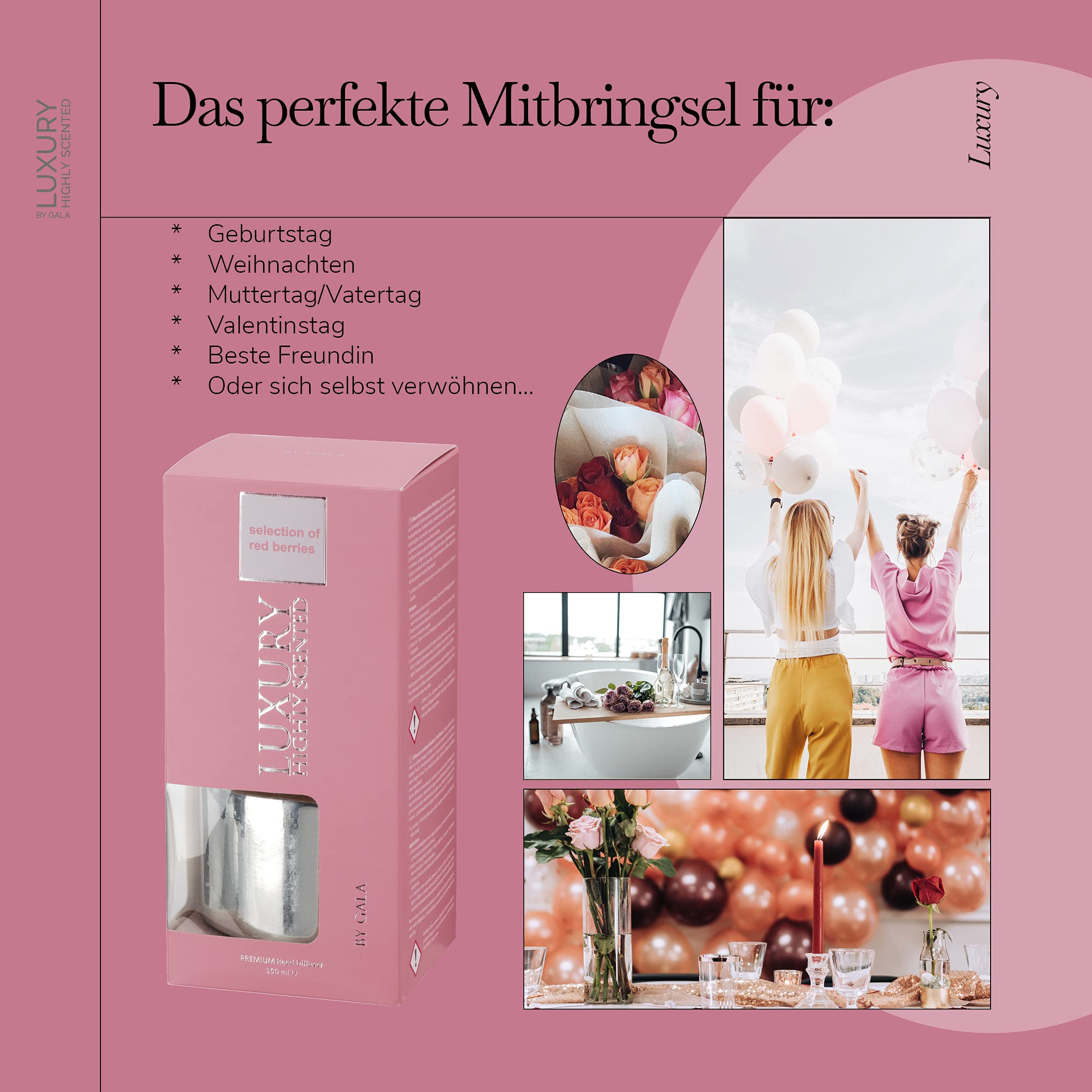 Luxus Raumduft Diffusor Mit 7 Stäbchen - Himbeer & Blumen Duft - Bis 90 Tage Duft - Für Wohnzimmer & Büro