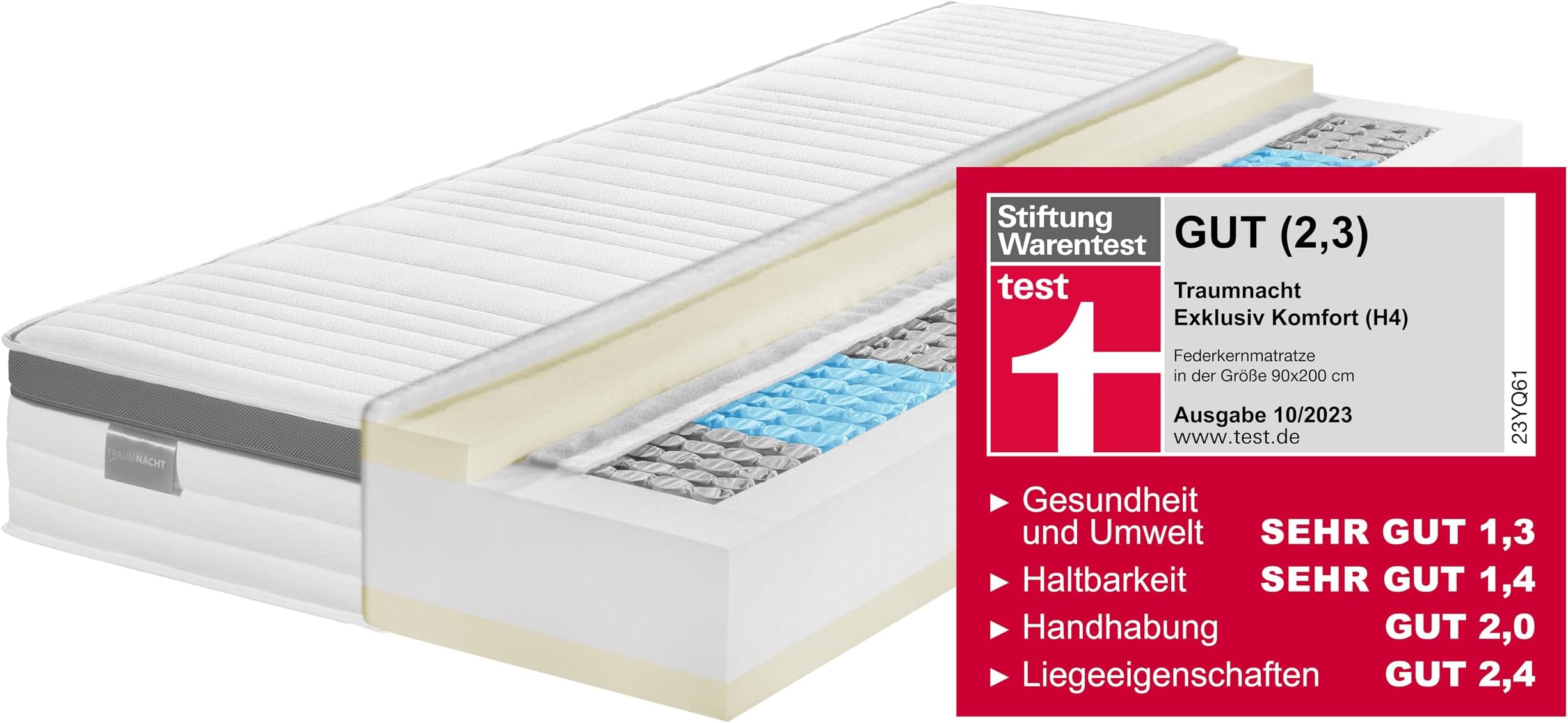 Queblox Matratze 160x200 H3 - 7 Zonen Taschenfederkern Mit Oeko-TEX Zertifizierung