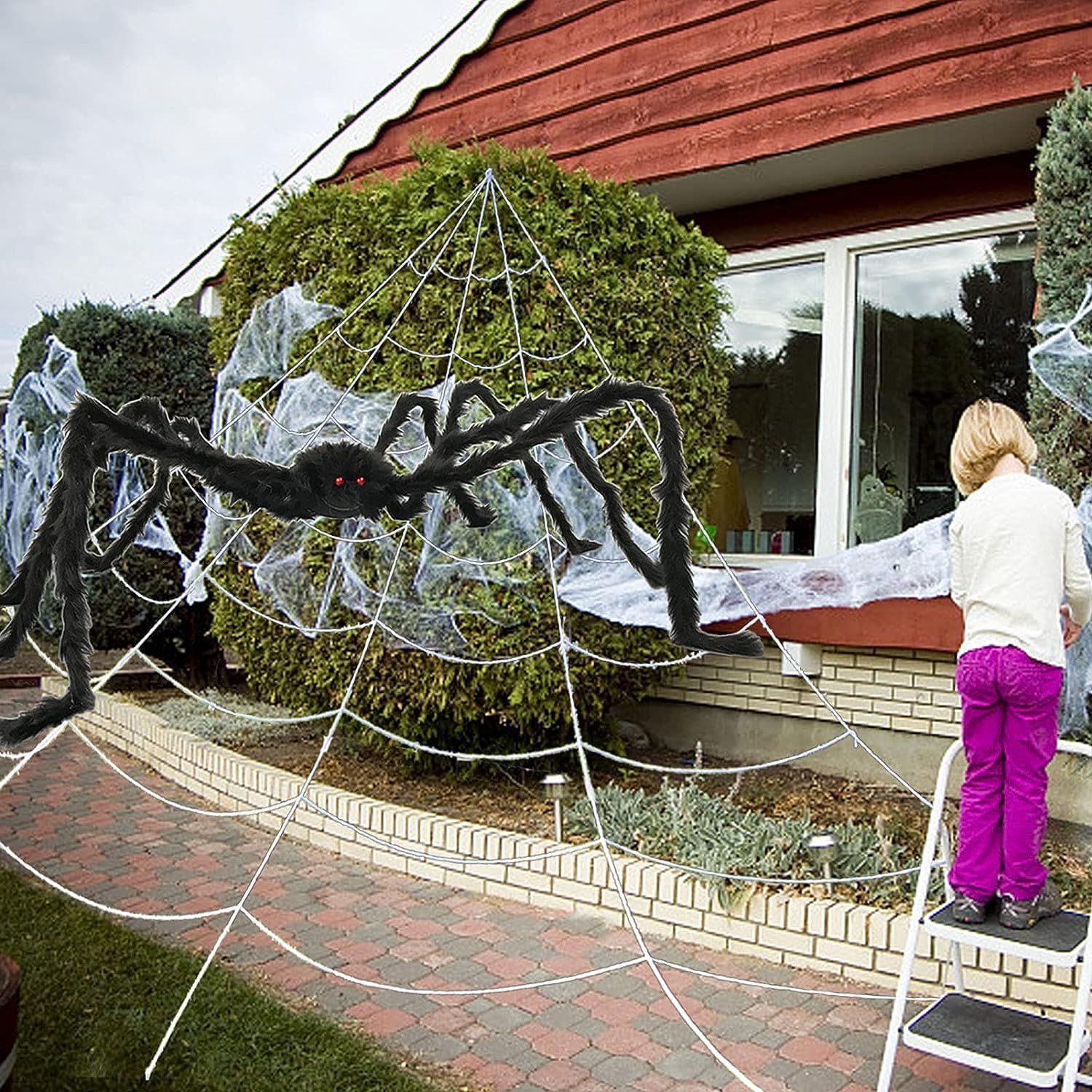 IZoeL XXL Halloween Deko Set - 700cm Spinnennetz + 200cm Riesenspinne + 30 Mini Spinnen