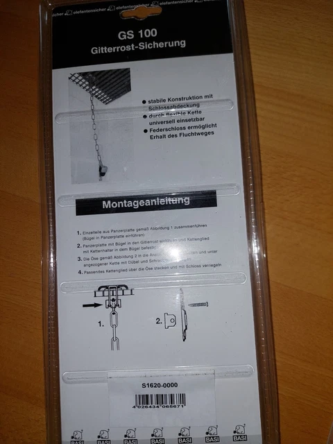 Sicherheit geht vor! Diese Gitterrost Sicherungskette mit 700mm Länge sorgt für zuverlässigen Schutz an Lichtschächten und anderen Bereichen. Das Komplett-Set enthält alles, was du für die Installation brauchst: 2 Befestigungswinkel, 2 Einhängebügel, 2 Sicherungsplinten, 4 Dübel S8 und 4 Schrauben M6. Top Industrie-Qualität garantiert Langlebigkeit und Stabilität. Einfach zu montieren und bietet maximalen Schutz gegen unbeabsichtigtes Öffnen oder Verrutschen von Gitterrosten. Perfekt für Privathaushalte, Gewerbe oder Industrie - wo immer Gitterroste gesichert werden müssen. Mit diesem Set bist du auf der sicheren Seite und kannst beruhigt sein, dass alles fest und sicher an seinem Platz bleibt!