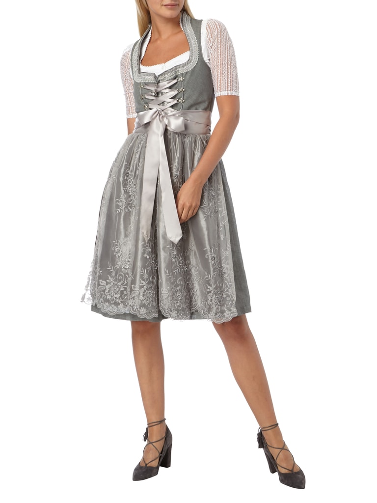 Marjo Samtdirndl Kirchham 70cm - Elegantes Ton-in-Ton Dirndl Für Damen Mit Reißverschluss