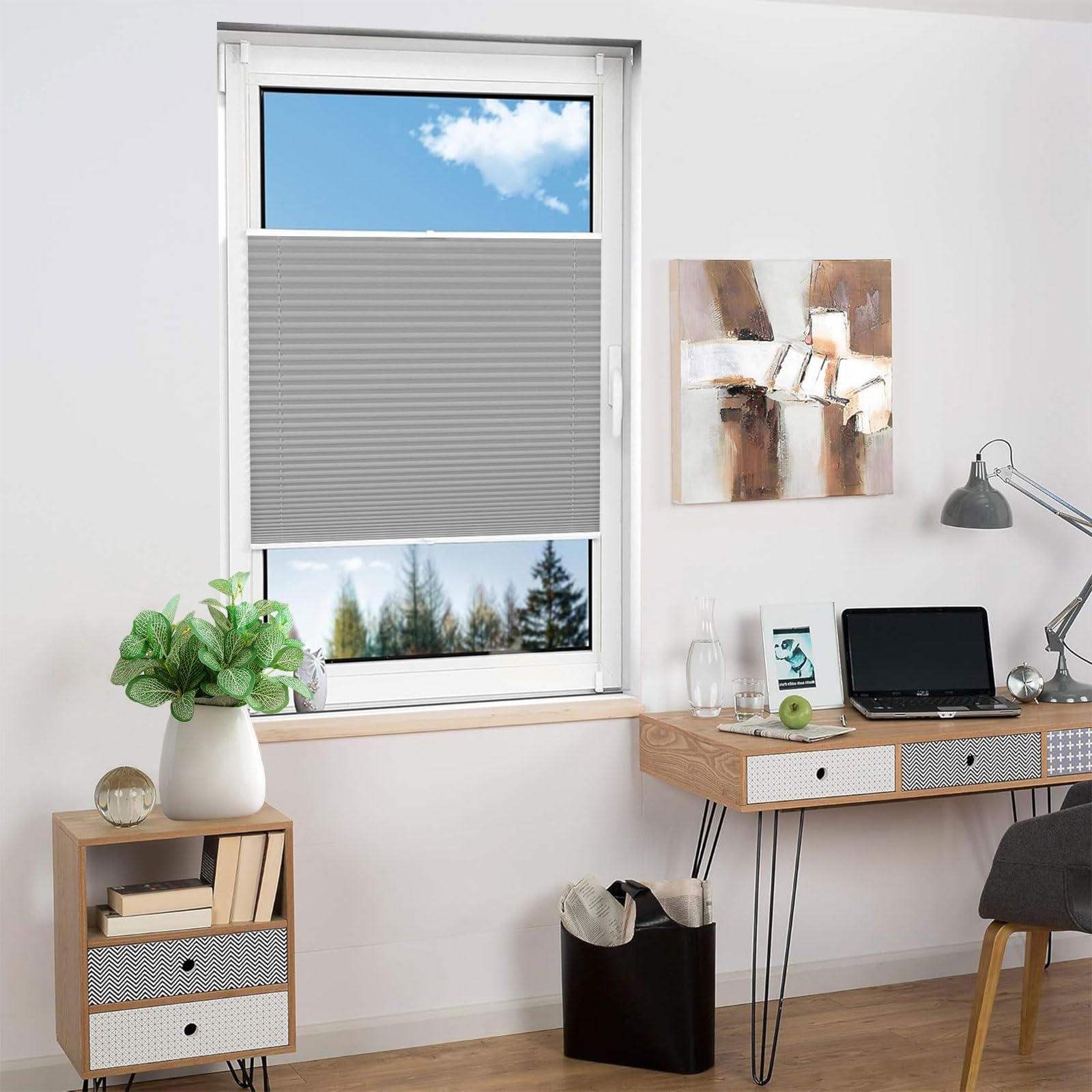 Schluss mit komplizierten Installationen! Dieses praktische Plissee kommt ganz ohne Bohren aus und ist in wenigen Minuten montiert. Mit den Maßen 70x105cm passt es perfekt in die meisten Standardfenster und bietet dir sofortigen Sichtschutz und angenehme Verdunklung. Das clevere Klemm-System sorgt für einen sicheren Halt am Fensterrahmen - ideal für Mieter oder alle, die keine Löcher in die Wand machen wollen. Das halbtransparente Polyester-Material mit modernem Wabenmuster lässt sanftes Licht durch, während es neugierige Blicke abhält. Die Höhe ist stufenlos verstellbar, sodass du Licht und Privatsphäre perfekt regulieren kannst. Im Lieferumfang ist alles enthalten, was du brauchst: Plissee, Klemmen, Clips und Montagezubehör. Einfach auspacken, anklemmem und entspannen!