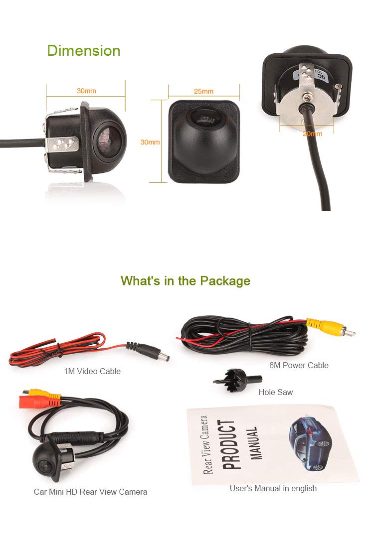Erisin 170° AHD 720P Auto Kamera - Wasserdichte Front-/Rückfahrkamera Mit Nachtsicht