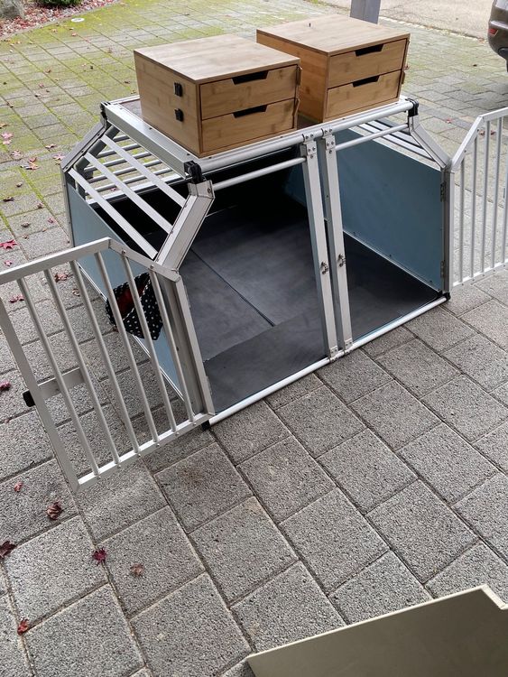 Dein Hund sicher unterwegs - mit der hochwertigen Schmidt-Box aus Deutschland! Diese leichte Alu-Box wiegt nur 11kg und ist doch extrem stabil. Die Maße 60x73x68cm bieten perfekten Platz für Hunde bis 18kg (wie Cocker Spaniel). Die angeschrägten Wände passen ideal in die meisten Kombi-Kofferräume. Kein Klappern, kein Quietschen - dein Vierbeiner reist entspannt und sicher. Die Box ist crashgetestet und bietet bei Unfällen optimalen Schutz. Einfache Montage - wird zerlegt geliefert und in Minuten zusammengebaut. Oberflächenveredeltes Aluminium, witterungsbeständige Schichtholzplatten und GFK-Ecken garantieren Langlebigkeit. Made in Germany - Qualität, der du vertrauen kannst. Dein Hund hat seinen eigenen Rückzugsort, du hast die Gewissheit, dass er sicher reist. Perfekt für tägliche Fahrten, Urlaube oder Tierarztbesuche!