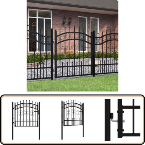 HOMIUSE Doppelflügel Gartentor 3x1,75 M - Schwarzes Metalltor Mit Speerspitzen, 3 Schlüssel