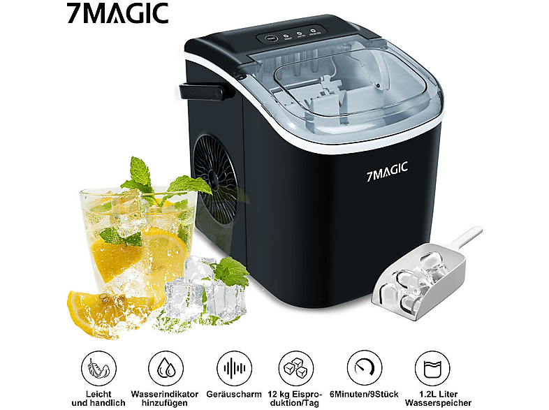 Perfekte Eiswürfel für jede Party! Die Princess Eiswürfelmaschine produziert in nur 6 Minuten bis zu 9 Eiswürfel – wahlweise in zwei verschiedenen Größen. Mit großzügigem 1,75-Liter-Wassertank und starkem Kompressor schafft sie bis zu 12 kg Eis am Tag! Perfekt für Gartenpartys, Familienfeiern oder einfach nur für erfrischende Getränke an heißen Tagen. Das digitale Bedienfeld macht die Bedienung super einfach. Praktische Kontrollleuchten zeigen an, wenn der Eisbehälter voll ist oder Wasser nachgefüllt werden muss. Mit Selbstreinigungsfunktion für mühelose Pflege. Kompakte Maße (33,5x23x29,5cm) mit integriertem Tragegriff – passt in jede Küche und ist flexibel umzustellen. Im Lieferumfang: Eiswürfelmaschine, Auffangbehälter und Servierschaufel. Nie wieder Eiswürfel kaufen – mach dein Eis einfach selbst, wann immer du willst!