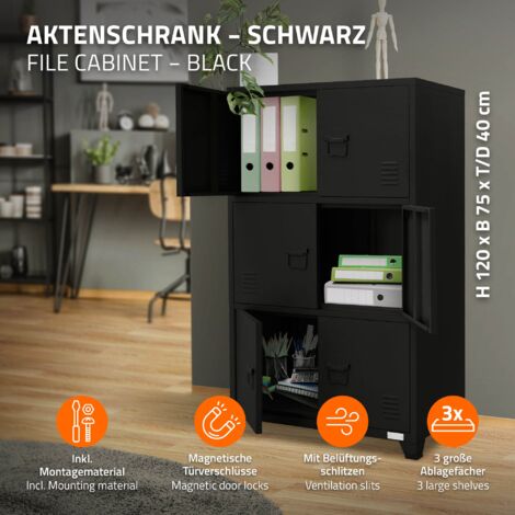 Ordnung muss sein - und mit diesem ML-Design Aktenschrank klappt das perfekt! Mit den Maßen 75x40x80,5cm bietet er genug Stauraum für alle deine Unterlagen. Aus robustem, pulverbeschichtetem Stahl und im trendigen Industrial-Design. 4 Türen mit praktischem Magnetverschluss und Lüftungsschlitzen sorgen für sichere Aufbewahrung und gute Belüftung. Die abnehmbaren Füße mit Bodenschonern passen sich jedem Boden an. Ein festes Regal und durchgängige Fächer ohne störende Trennwände machen den Schrank super praktisch. Perfekt fürs Homeoffice, Büro oder auch als Lagerschrank - hier findet alles seinen Platz!