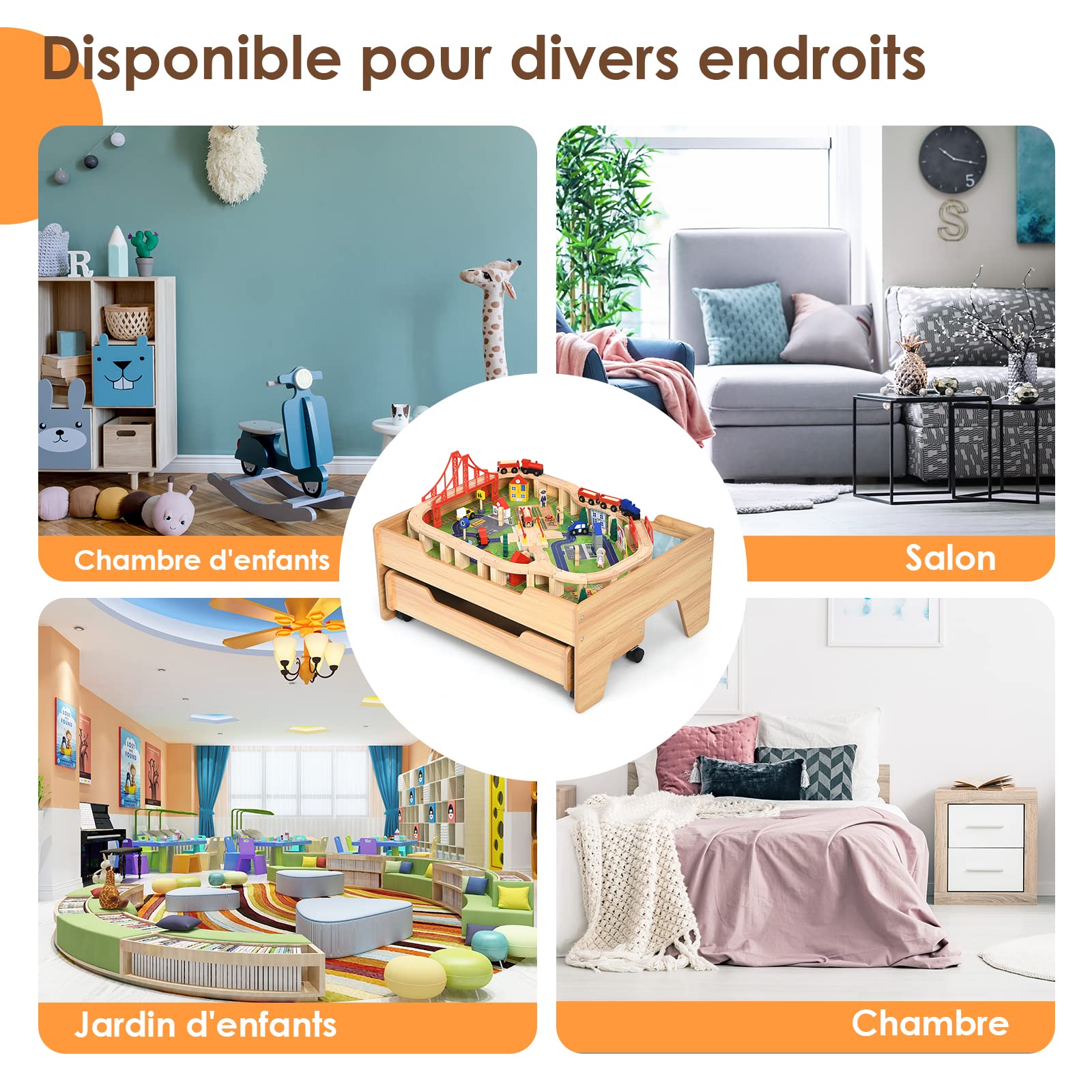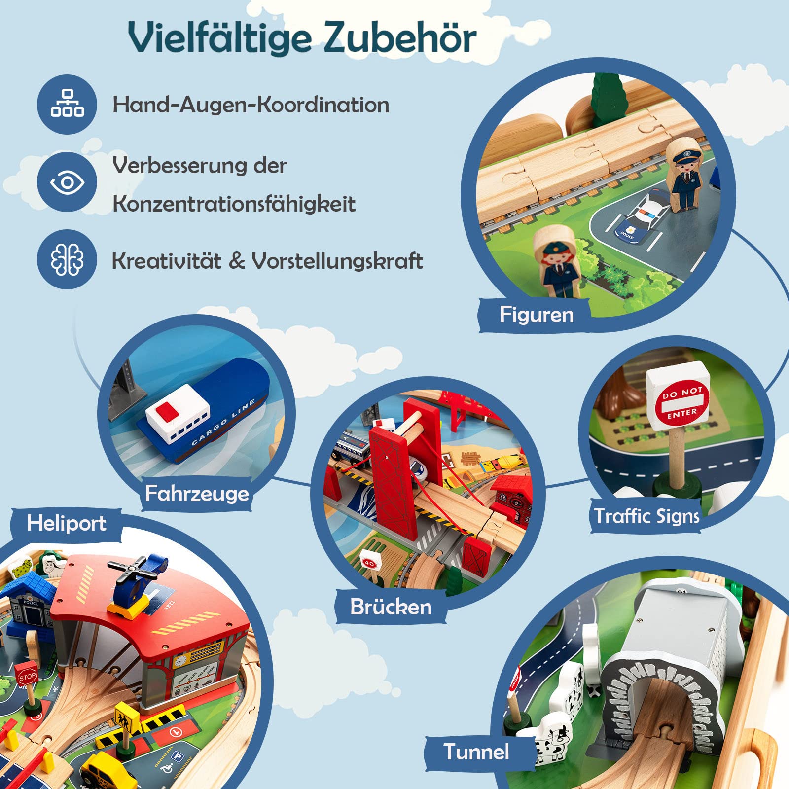 GOPLUS Kinder Spieltisch 78-teilig - Eisenbahn Mit Wendbarer Tischplatte